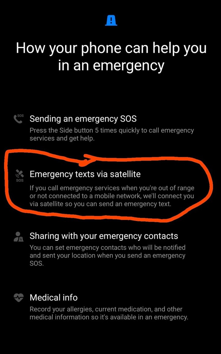 Aus anderer Quelle scheinen sich zudem die bereits im Vorjahr für Galaxy S23, Galaxy S23+ und Galaxy S23 Ultra (hier bei Amazon erhältlich) gemunkelten Satelliten-SOS-Features zu bestätigen. Ein Screenshot (siehe unten) soll beweisen, dass nun tatsächlich ein zur Apple iPhone 15 Generation vergleichbares Messaging via Satellit auch in den Samsung-Flaggschiffen Einzug halten wird. Der Beschreibung zufolge wird das Feature Teil der Emergency SOS Funktion und soll automatisch einspringen, wenn man sich außerhalb der Reichweite eines Mobilfunknetzes befindet. Nähere Details, etwa die unterstützten Regionen, sind derzeit aber noch nicht bekannt.