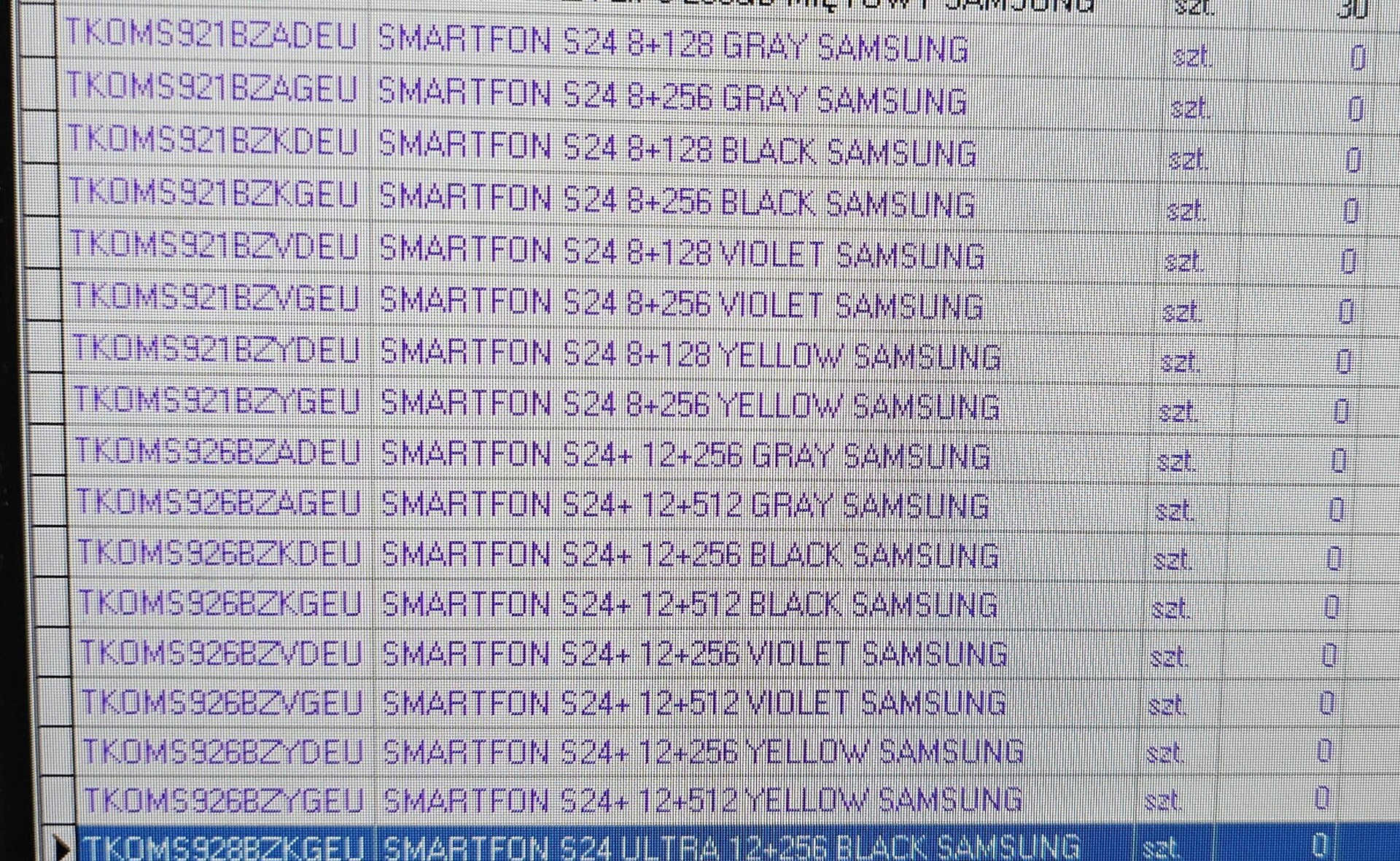 Der Mystery-Leaker Arsene Lupin hat mal wieder zugeschlagen und auf X (vormals Twitter) zwei Screenshots veröffentlicht, die offensichtlich aus der Datenbank eines Händlers beziehungsweise eher eines bekannten Mobilfunkbetreibers stammen dürften. Die unten eingebetteten Bilder listen alle offenbar geplanten Speicher- und Farbvarianten der Samsung Galaxy S24-Serie auf - sie besteht demnach aus insgesamt 28 Modellen.