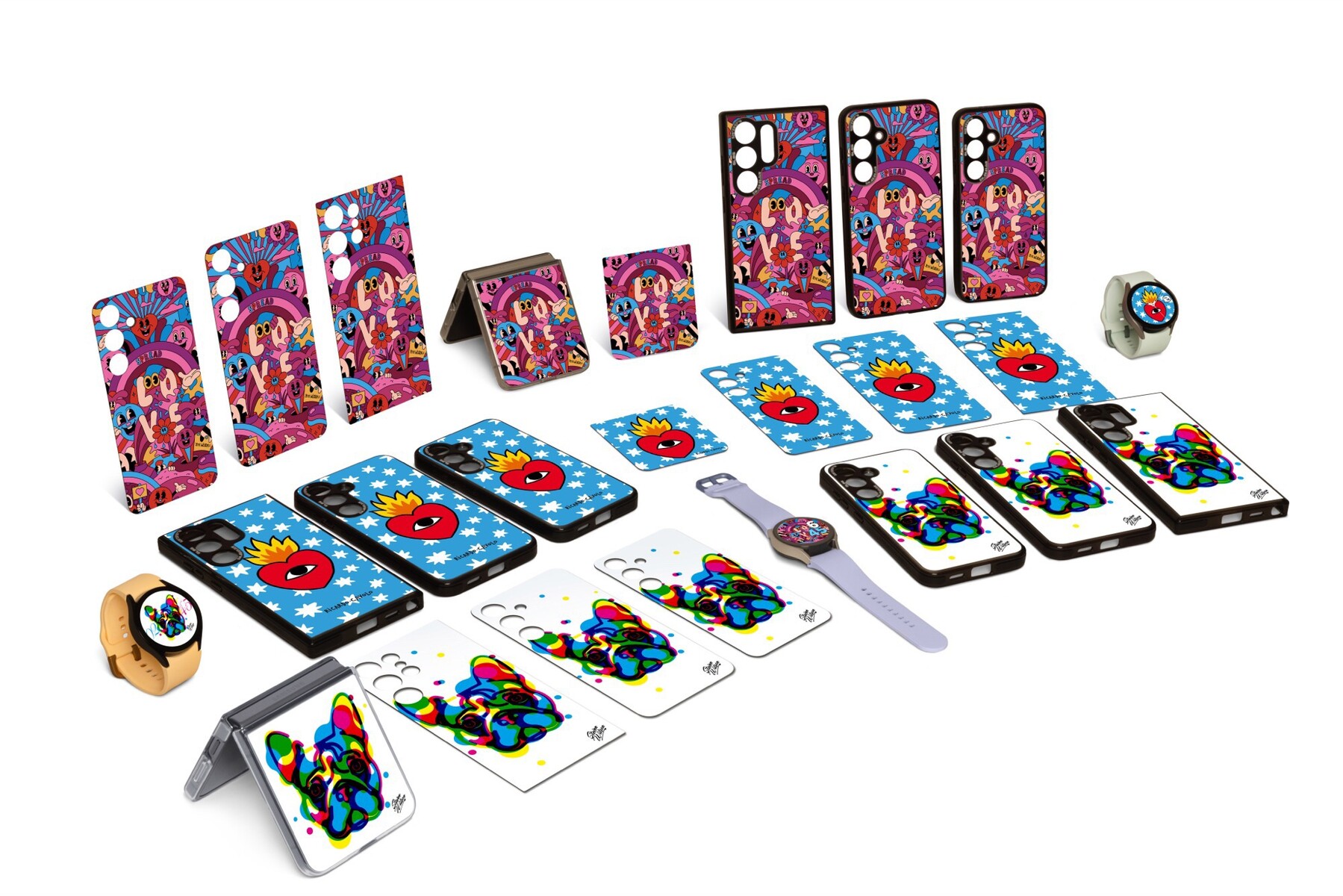 Den Anfang macht das bekannte Motiv "Spread Love" von Yeye Weller, einem Künstler aus Münster, gefolgt von einer auffälligen Bulldogge vom britischen Illustrator Steven Wilson und der ikonischen Zeichnung "Flaming Heart" vom in Spanien ansässigen Künstler Ricardo Cavolo. Die bedruckten Kunststoff-Schutzhüllen umschließen sowohl die Rückseite als auch den Rahmen, um die Flaggschiffe vor Kratzern und Stürzen zu schützen.