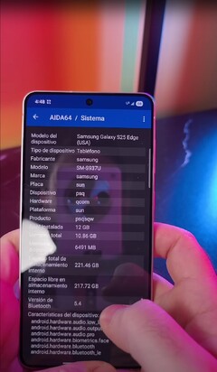Das Samsung-Phone mit der Modellnummer SM-S937U ist ein US-Modell mit 12 GB RAM und offenbar 256 GB Speicher wie einige Bilder der Analysesoftware AIDA64 zeigen. Die liefern durchaus auch noch andere, teils wohl etwas enttäuschende Specs, etwa zur Akkugröße. Mit 4.000 mAh ist die Batterie des Galaxy S25 Edge nur so groß wie jene des deutlich kleineren 6,2 Zoll Galaxy S25, das ähnlich große 6,7 Zoll Galaxy S25+ (hier bei Amazon erhältlich) hat dagegen Platz für einen 4.900 mAh Akku.