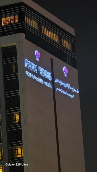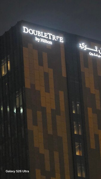 Keines dieser Fotos wirkt besonders bemerkenswert, wenn man andere aktuelle Kameras wie etwa jene des Vivo X300 Pro (hier bei Amazon erhältlich) gewohnt ist. Insbesondere bei Nacht wirken Samsungs 10x Telefoto-Shots recht flach, nun allerdings kontrastreicher und schärfer, wohl wegen der größeren Blende am 5x Telefoto. Die starken Artefakte rund um den Hotel-Schriftzug in einem Foto-Duo stören uns auf dem Galaxy S25 Ultra Foto-Sample jedenfalls mehr als beim Galaxy S26 Ultra, hier gibt's also potentiell gute Nachrichten in Sachen Optik.