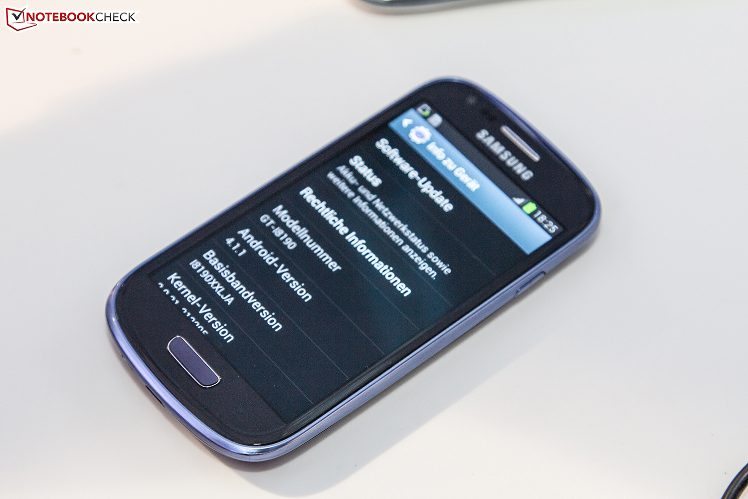 Natürlich hatten wir vor Ort auch die Möglichkeit das Smartphone anzutesten. Es fühlt sich wertig an, wobei es natürlich nicht an den Aluminium-Unibody des Apple iPhone 5 herankommt. Die Größe erscheint im Vergleich zum größeren Galaxy S3 (GT-I9300) aber deutlich angenehmer. Es liegt gut in der Hand und ist mit 111 Gramm auch sehr leicht. Als Betriebssystem nutzt Samsung das aktuelle Google Android 4.1.1 (Jelly Bean). Im ersten Test überzeugt auch die Performance. An das normale S3 kommt es natürlich nicht heran. Eine gute Nachricht für Nutzer älterer Smartphones oder Mobiltelefone: Das Galaxy S3 Mini nutzt eine normale SIM-Karte. Für eine Micro- oder Nano-SIM wäre ein Adapter notwendig.