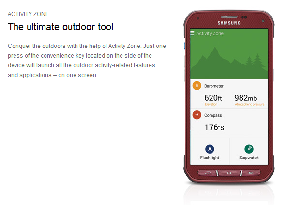 Eine neue Information ist die grüne Tarnfarbe, die man sich optional für das Smartphone aussuchen kann. Vorne ist das Handy dunkelgrün und hinten mit dem militärischen Tarnmuster in Grüntönen für Wälder versehen. Titangrau und Rubinrot sind weitere optionale Farben. Angeblich hat das Galaxy S5 Active „militärische Specs“. Das Smartphone wird von AT&T zum selben Preis vertrieben wie das Galaxy S5 – nämlich für rund 200 US-Dollar mit Zwei-Jahres-Vertrag. Es dürfte auch in Deutschland für den Preis des Galaxy S5 erscheinen.