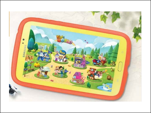 Das Samsung Galaxy Tab 3 Kids wird es gemäß der Zielgruppe in verschiedenen Farben geben. Das sieben Zoll große Tablett bietet eine bescheidene Auflösung von 1024 x 600 Pixeln, einen 1,2 GHz Dualcore-Prozessor, 1 GB RAM, 8 GB mit microSD erweiterbaren internen Speicher und es läuft mit Android 4.1 Jelly Bean. Das Gewicht beträgt leichte 302 Gramm und die Dicke 9,9 Millimeter. Der Akku bietet eine Kapazität von 4.000 mAh.