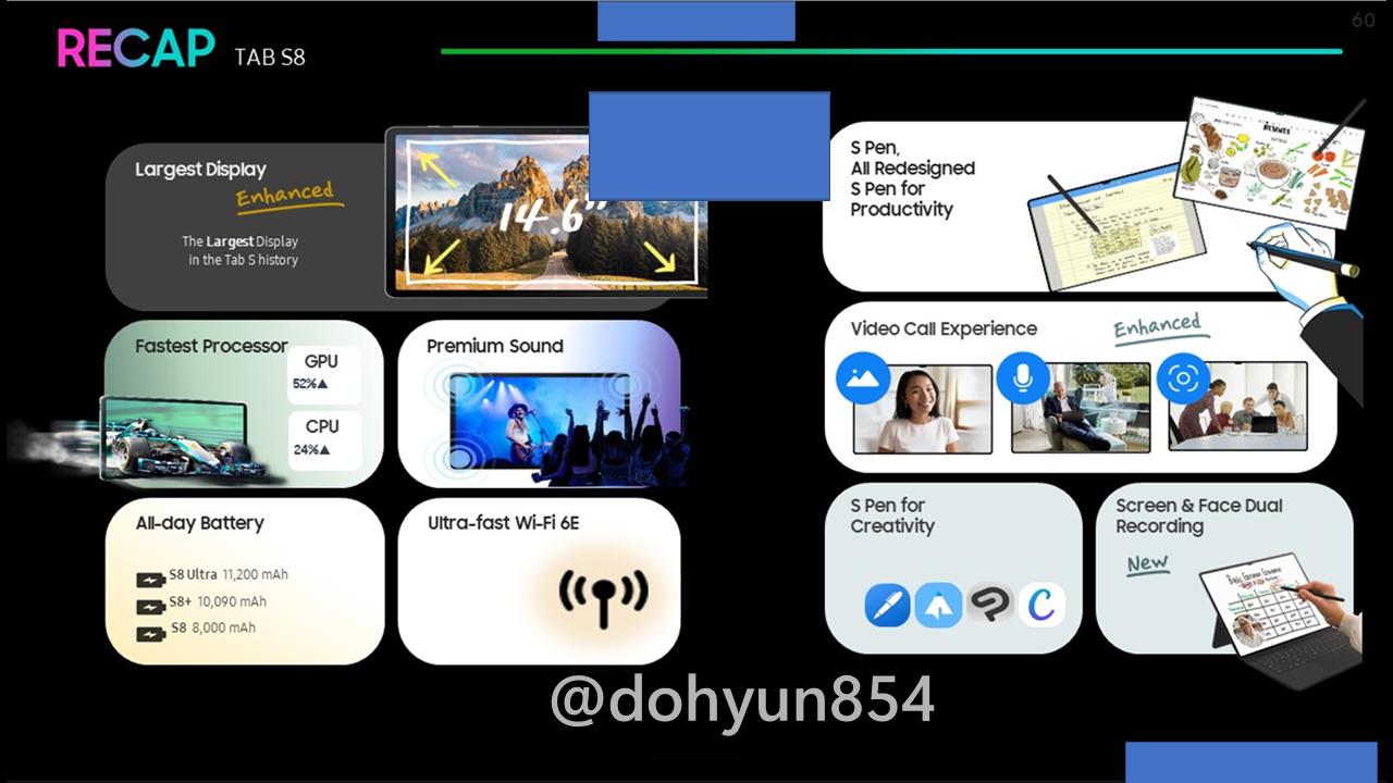 Samsung Galaxy Tab S8-Serie: Geleakte Präsentationsfolien und Promovideo bestätigen High-End-Tablet-Features wie 2,8 ms S-Pen-Latenz