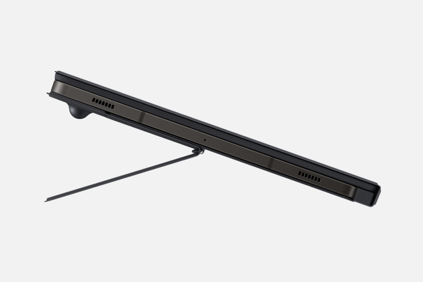 Das Galaxy Tab S9 Plus fällt mit einem 12,4 Zoll AMOLED-Display und einem 10.090 mAh Akku bedeutend kleiner aus, besitzt aber dieselben rückseitigen Kameras. Auf der Vorderseite gibts nur eine 12 MP Selfie-Kamera, die mit einem Ultraweitwinkel-Objektiv bestückt ist. Die Bildschirmränder fallen etwas dicker aus als beim Galaxy Tab S9 Ultra, dafür kommt das Tablet ohne Notch aus. Beide Tablets erhalten ein Upgrade auf den Qualcomm Snapdragon 8 Gen 2 Flaggschiff-Prozessor, vermutlich in der schnelleren "for Galaxy"-Version. Die unten eingebetteten Bilder zeigen bereits die Tastaturhülle für das Galaxy Tab S9 Plus, sowie eine Schutzhülle mit integriertem Standfuß.