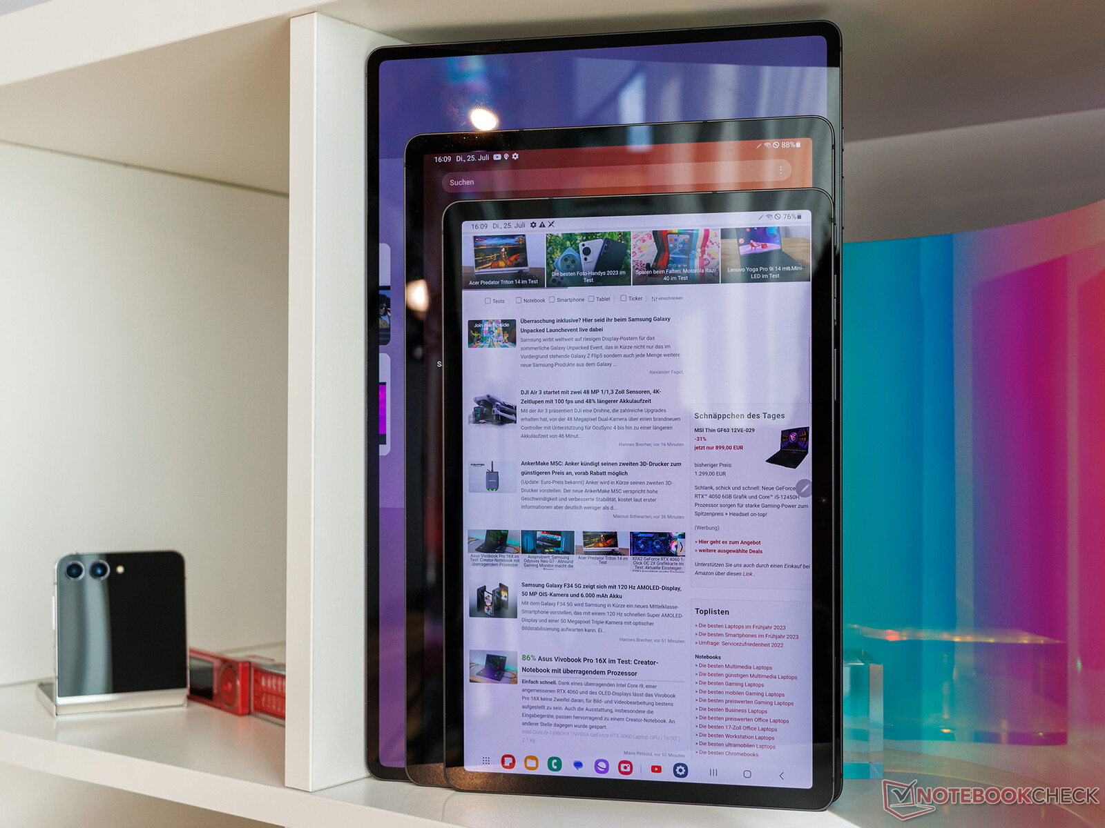Samsungs Premium-Tablets sollen sich aber vor allem auch durch viele kleine Details von ihren größtenteils deutlich billigeren Konkurrenten aus China absetzen und hier setzt Samsung 2023 vor allem auf eine bessere App-Optimierung, bessere Stiftbedienung und natürlich sein Galaxy Ökosystem. Samsung zufolge wurden und werden 3265 der am meisten genutzten Android-Anwendungen zunehmend für Tablets optimiert, im Vergleich zu 2022 sei man 2023 auf diesem Weg bereits deutlich weiter. 25 Prozent dieser Anwendungen seien bereits voll optimiert, 51 Prozent zusätzlich dank Samsung Labs besser in Multitasking-Szenarien nutzbar.