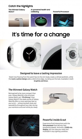 Den Anfang macht die Galaxy Watch8, die als 40 Millimeter Version für 379,99 Euro auf den Markt kommen soll, für das größere 44 Millimeter Gehäuse veranschlagt Samsung einen Aufpreis von 30 Euro, für das LTE-Modem müssen 50 Euro extra bezahlt werden. Die Promo-Bilder zeigen das überarbeitete Design im Detail, denn während Samsung weiterhin auf ein rundes Display setzt, erinnert das Gehäuse nun an ein stark abgerundetes Rechteck – Samsung nennt diesen Look "Kissen-Design".