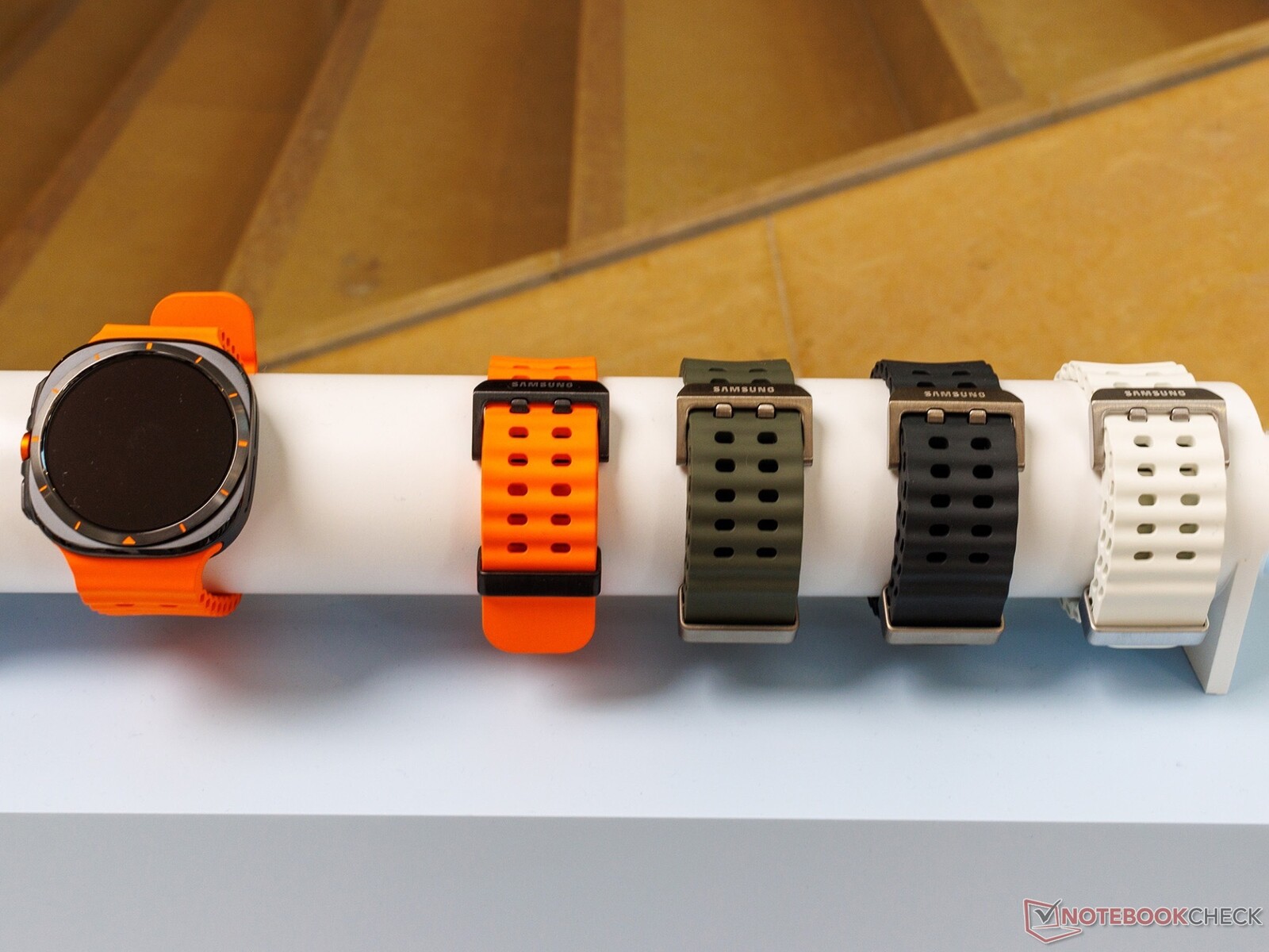 Die brandneue Samsung Galaxy Watch Ultra fungiert als Nachfolger der Galaxy Watch6 Classic (ca. 250 Euro auf Amazon). Das neue Topmodell besitzt ein auffälliges Design, denn Samsung kombiniert ein rechteckiges Gehäuse mit einem runden Display, inklusive oranger Farbakzente. Das Gehäuse wird teilweise mit Titan der Klasse 4 verstärkt, besteht ansonsten aber aus einer Mischung aus Kunststoff und weniger robustem Titan der Klasse 2.