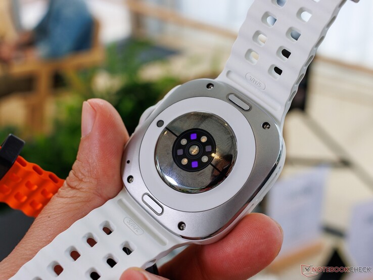 Das Gehäuse ist bis zu einer Tiefe von 100 Metern wasserfest, statt nur 50 Metern wie bei der Galaxy Watch7. Samsung verzichtet auf weiterführende Tauch-Features, wie man sie von der Apple Watch Ultra 2 kennt, die Galaxy Watch Ultra soll aber immerhin zum Schwimmen in Salzwasser geeignet sein. Mit einer Länge von 47 Millimetern, einer Bauhöhe von 12,1 Millimetern und einem Gewicht von 60,5 Gramm ist die Galaxy Watch Ultra wesentlich größer als die Galaxy Watch7, das Display ist aber dasselbe, denn auch im Topmodell kommt ein rundes 1,5 Zoll AMOLED-Panel mit einer Auflösung von 480 x 480 Pixel zum Einsatz.