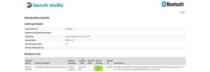 Samsung hat den Exynos W930 bei der Bluetooth SIG zertifiziert, und deutet damit an, dass die Galaxy Watch6 mit diesem Chip ausgestattet sein wird, statt wie von früheren Gerüchten angegeben mit einem brandneuen Exynos W980, der immerhin 10 Prozent mehr Leistung bieten sollte. Die Modellnummer "Exynos S5E5515" ist identisch mit der Modellnummer des Exynos W920, den man bereits von der Galaxy Watch4 und der Galaxy Watch5 (ca. 200 Euro auf Amazon) kennt.