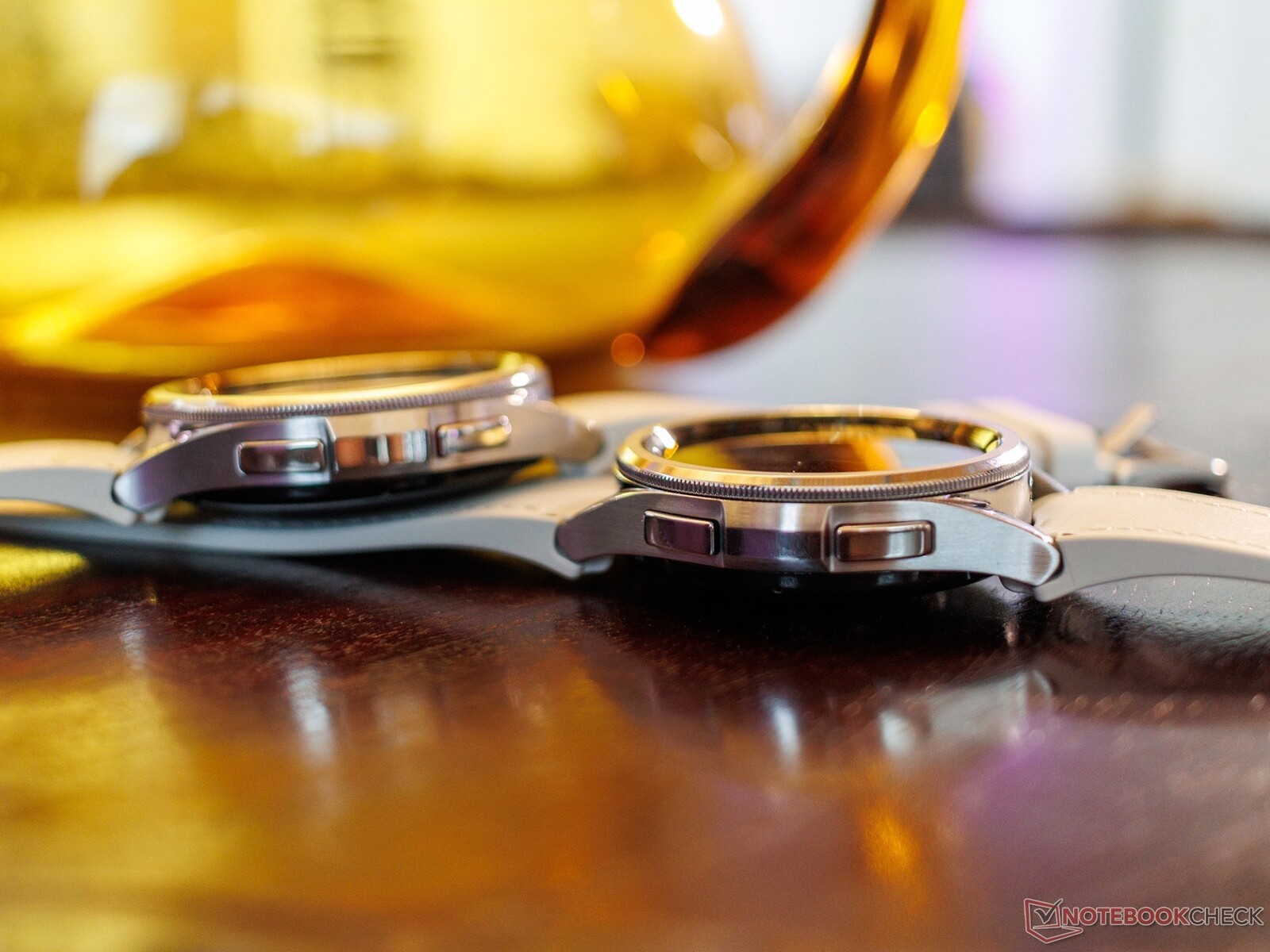 Die Samsung Galaxy Watch6 sieht der Galaxy Watch5 auf den ersten Blick zum Verwechseln ähnlich, das Gehäuse ist mit einer Bauhöhe von 9,0 Millimetern aber immerhin 0,8 Millimeter dünner, während die Bildschirmränder deutlich schmaler ausfallen, wodurch die verfügbare Bildschirmfläche um 20 Prozent wächst.