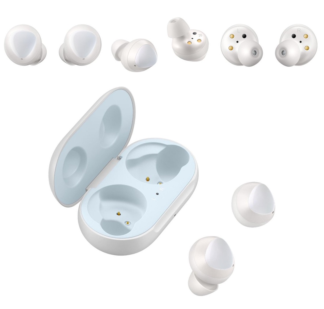 Die neuen kabellosen Ohrhörer von Samsung wurden wie die Smartwatch umbenannt und treten die Nachfolge der Gear Icon X aus dem Vorjahr an. Die in schwarz und weiß geplanten Bluetooth-Kopfhörer (hier seht ihr die schwarze Version) stammen von AKG und können beispielsweise kabellos am Galaxy S10 laden, wie ein geleaktes Bild bereits demonstriert hat. Mit 4 oder 8 GB Speicher sowie Unterstützung für Bluetooth 5 sind die kleinen nach IPX2-geschützten In-Ears ein Upgrade für alle Galaxy Audio-Fans, allerdings dürfte der Akku in den Satelliten sowie im Ladecase auf 58 mAh beziehungsweise 252 mAh geschrumpft sein.