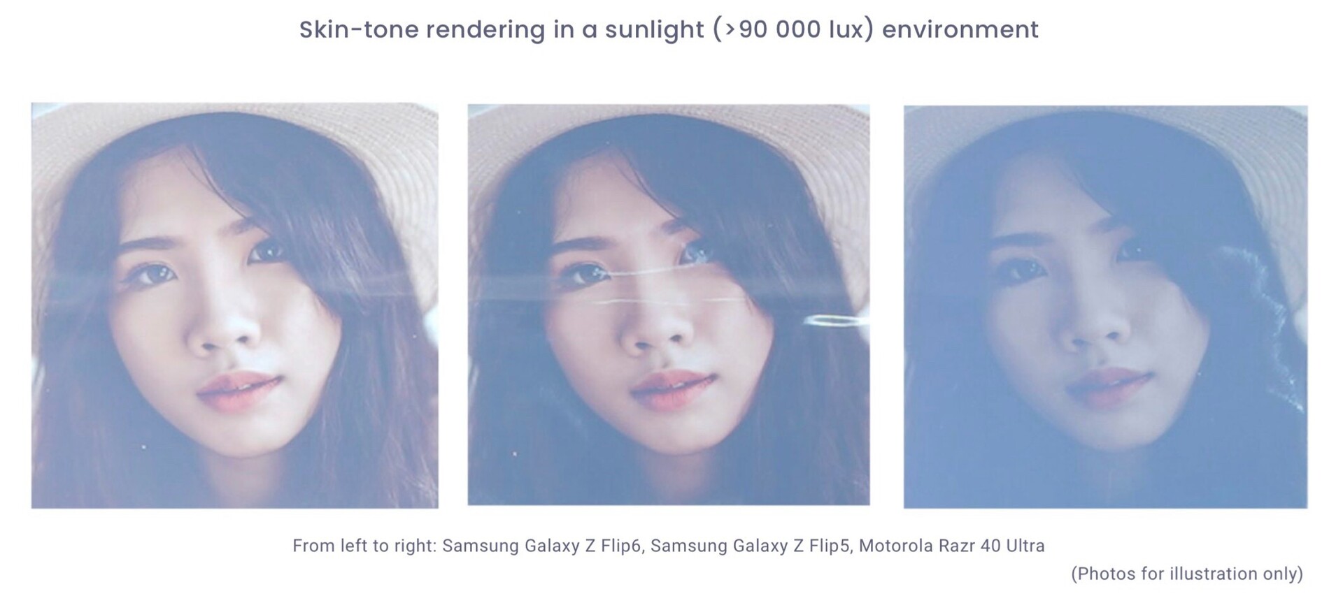 Die Kunststoff-Abdeckung des Falt-Displays reflektiert rund 5,5 Prozent des Umgebungslichts, weitaus mehr als die meisten herkömmlichen Smartphones – das Galaxy S24 Ultra reflektiert zum Beispiel nur 1,5 bis 2 Prozent. DxOMark kritisiert auch den Falz, der stets gut sichtbar ist. Dafür erhält das Display Lob für den Touchscreen, der sehr zuverlässig reagiert, für die einwandfreie Darstellung von Bewegungen und für die ausgezeichnete Lesbarkeit unter allen getesteten Bedingungen.