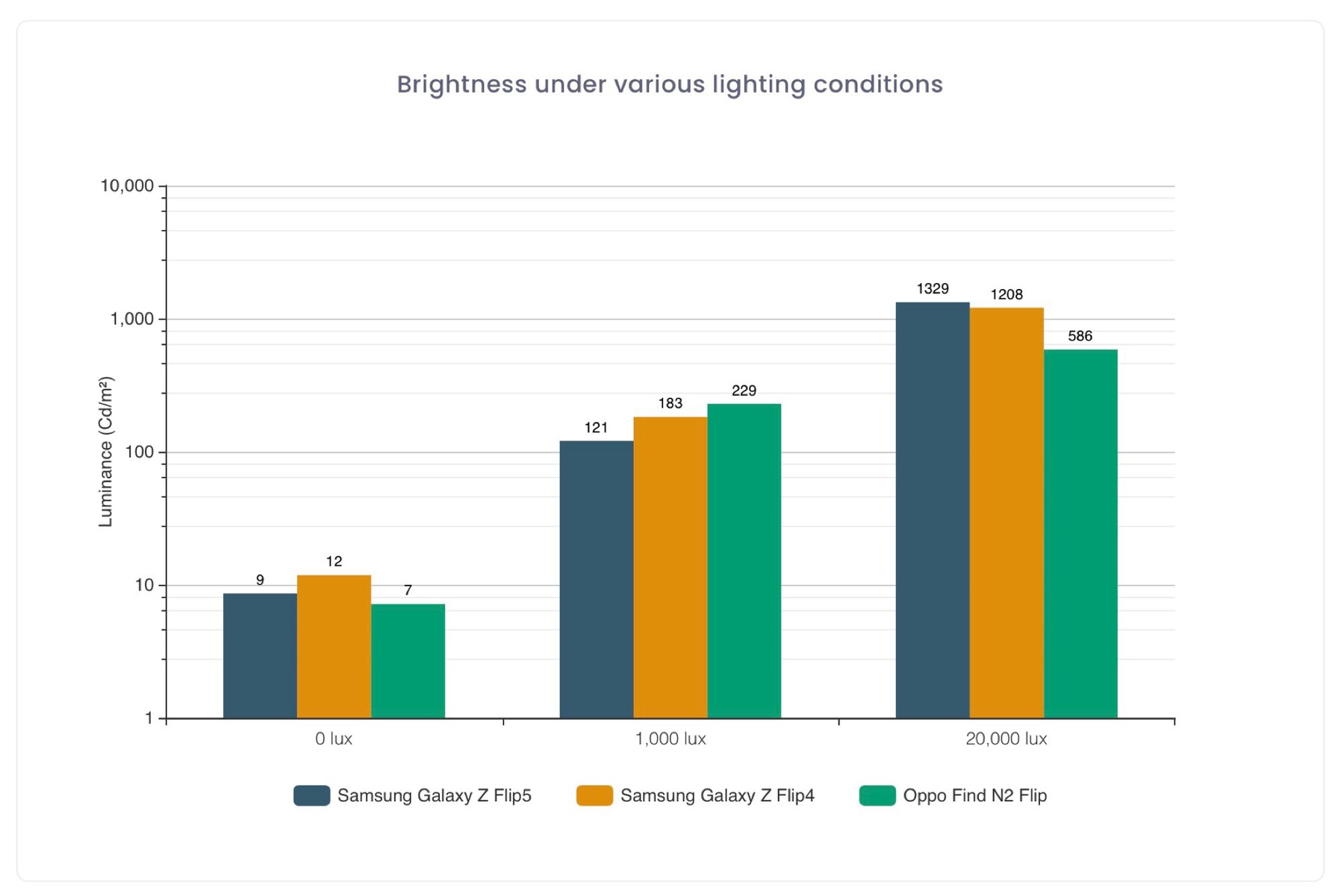 Dafür erreicht das Smartphone eine solide Spitzenhelligkeit von 1.710 Nits, wodurch das Display auch bei hellem Tageslicht lesbar bleibt – die höhere Helligkeit ist einer der größten Vorteile im Vergleich zum Galaxy Z Flip4. HDR-Inhalte werden korrekt dargestellt, ebenso wie bewegte Inhalte, unabhängig davon, ob es sich um Videos oder Spiele handelt.