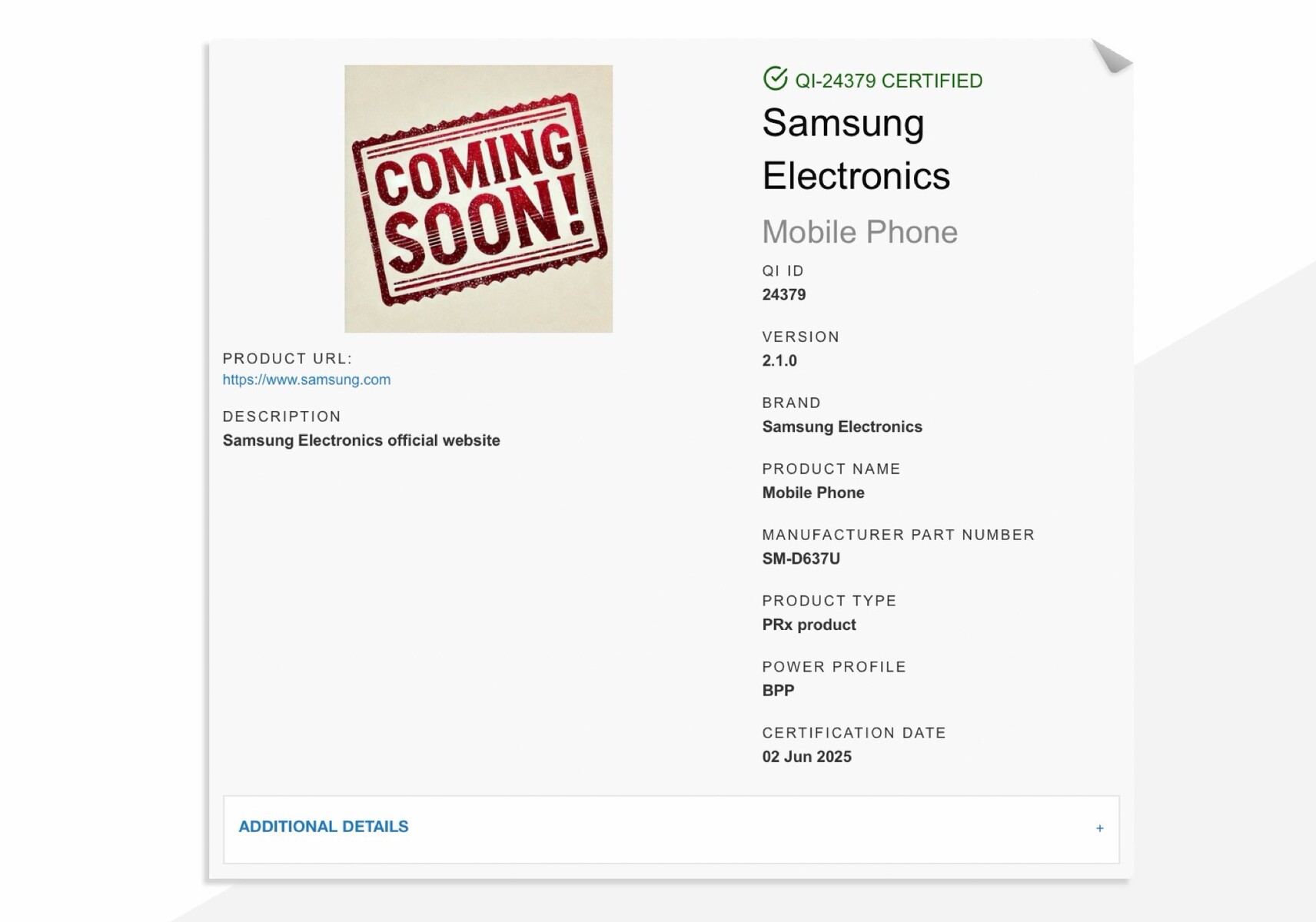 Das Samsung Galaxy Z Fold7 wird bereits auf der Webseite des Wireless Power Consortium gelistet, womit feststeht, dass das faltbare Flaggschiff der nächsten Generation den Qi 2.1.0 Standard unterstützt, statt wie noch das Galaxy Z Fold6 nur Qi 1.3.3. Allerdings unterstützt das Smartphone laut dieser Zertifizierung nur das Basic Power Profile (BPP), kann auf Qi-Ladepads also mit 5 Watt geladen werden.