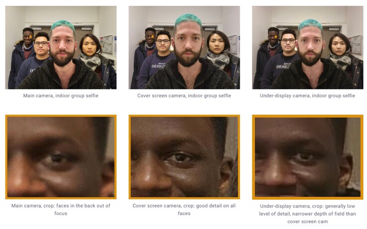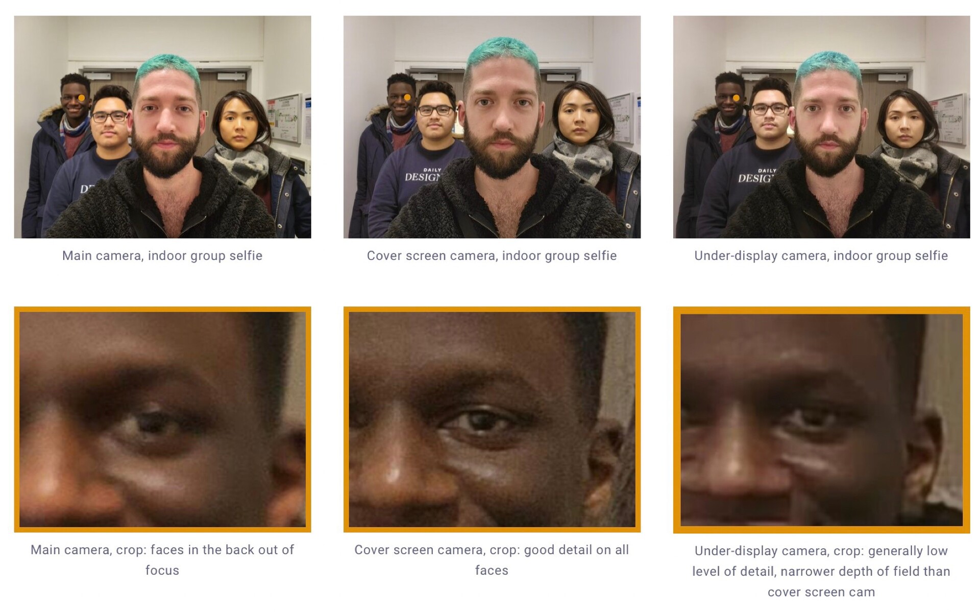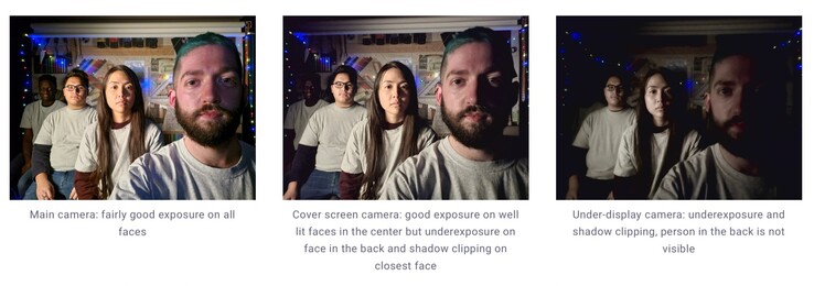 Es gibt allerdings auch Situationen, in denen die Punch-Hole-Frontkamera im Außendisplay eine bessere Wahl sein kann, nämlich bei Fotos von Gruppen, bei denen die deutlich größere Tiefenschärfe der Selfie-Kamera zu einer schärferen Darstellung von Personen im Vordergrund oder im Hintergrund führt, denn die Hauptkamera kann wie bei Smartphones üblich nicht abgeblendet werden. Die Kamera im Hauptdisplay sollte dagegen möglichst vermieden werden, wenn die Bildqualität Priorität hat.