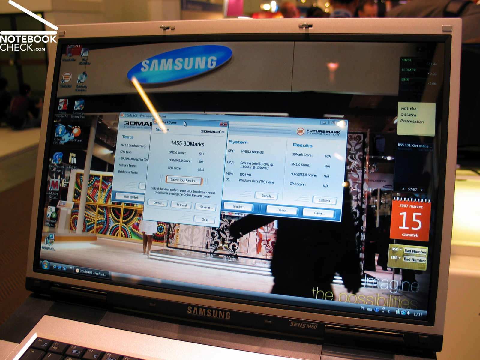 17 Zoll Flunder. Samsung rühmt sich die kleinsten, flachsten und leichtesten Serien Notebooks zu bauen - nicht zu unrecht. Aber auch die Herausforderung ein 17 Zoll Desktopreplacement zu entwerfen und mit adäquater Leistung zu versehen, heißt bei Samsung nicht, eine 5cm Kiste zu entwerfen. Nein, wie uns das M60 von Samsung lehrt: Auch große DTR Notebooks können elegant sein.