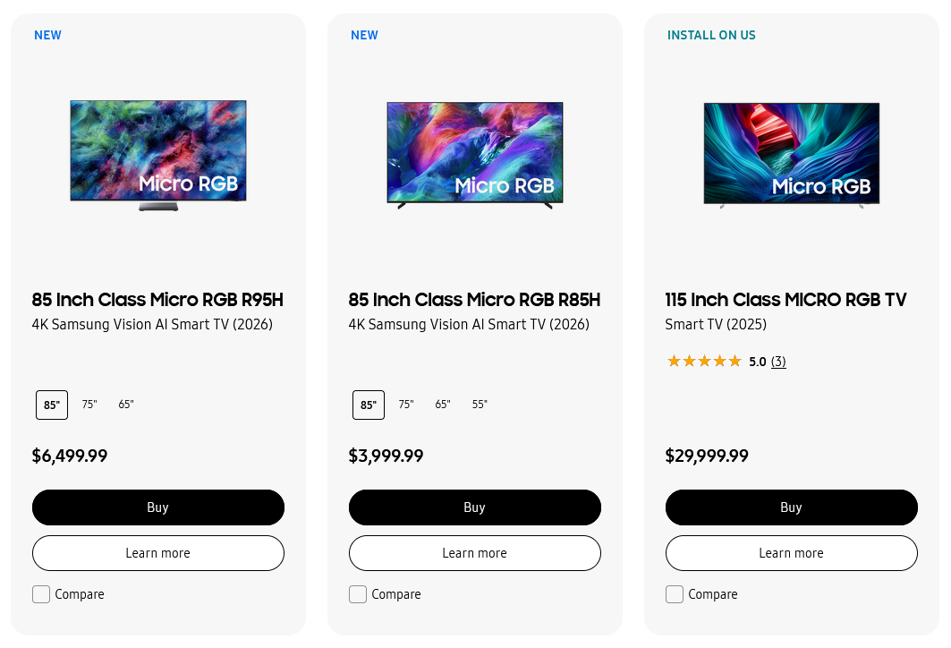 Samsung Micro-RGB-TVs für 2026: Spezifikationen und Features bestätigt