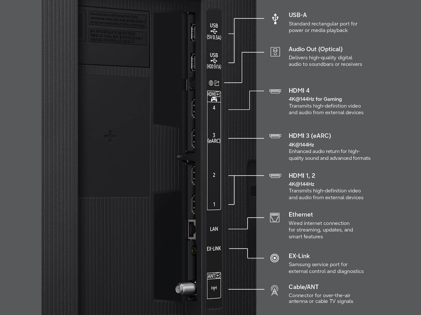 Die TV-Reihe 2026 basiert auf der One UI Tizen-Plattform, für die Samsung Updates über einen Zeitraum von bis zu sieben Jahren zugesagt hat. Beim Design unterstützt das R95H Wireless One Connect Ready, wodurch sich ein kabelloser Look realisieren lässt, indem die Anschlüsse in eine separate Funkbox ausgelagert werden. Beide Serien sind mit der Slim-Fit-Wandhalterung für eine flache Montage an der Wand kompatibel und bieten Zugriff auf den Samsung Art Store.