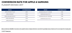 Newzoo registrierte in seinem Mobile-Marktreport für Samsung die gigantische Zahl von 859 Millionen aktiven Smartphones. Im Jahr 2017 rechnen die Analysten mit weltweit insgesamt 2,6 Milliarden Smartphones. Apple und das iPhone bringen es laut Newzoo mit einem Marktanteil von 25 Prozent auf Platz 2, vor dem chinesischen Branchenriesen Huawei. Huawei hält mit einem Marktanteil von 7,4 Prozent den 3. Rang.