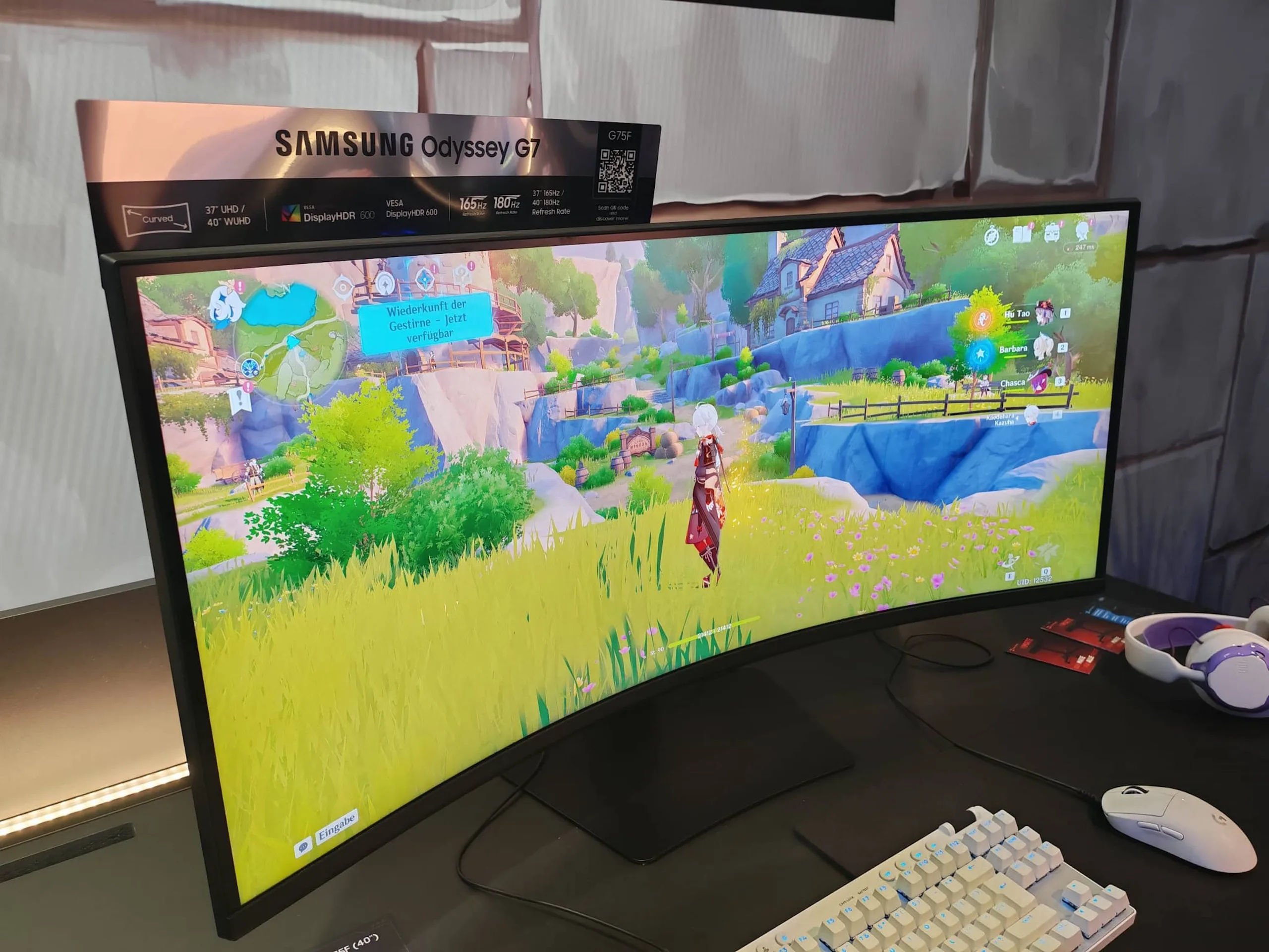 Samsung hat auch der Gamescom zwei neue Monitore zumindest der deutschen Öffentlichkeit erstmals präsentiert. Beim 37 Zoll großem Odyssey G6 G60SF handelt es sich dabei auch um ein schon erhältliches Display, im Preisvergleich ist diesen für einen Preis von mindestens 1.068 Euro gelistet. Der Hersteller nutzt ein 27 Zoll großes QD-OLED-Panel, wobei es sich um einen flachen Bildschirm und damit nicht gekrümmten Bildschirm handelt. Die Auflösung liegt bei 2.560 x 1.440 Pixeln, die maximale Bildwiederholfrequenz liegt bei 500 Hz und die Grau-zu-Grau-Reaktionszeit wird mit 0,03 Millisekunden angegeben. G-Sync und FreeSync Premium Pro werden unterstützt, der Monitor kommt in einem Metall-Design und auch mit einer rückwärtigen Beleuchtung. Verbaut ist ein USB-Hub, allerdings fehlt beispielsweise ein Ethernet-Port. HDMI steht zweimal bereit, dazu kommt noch einmal DisplayPort. VESA DisplayHDR True Black 500 wird beworben.