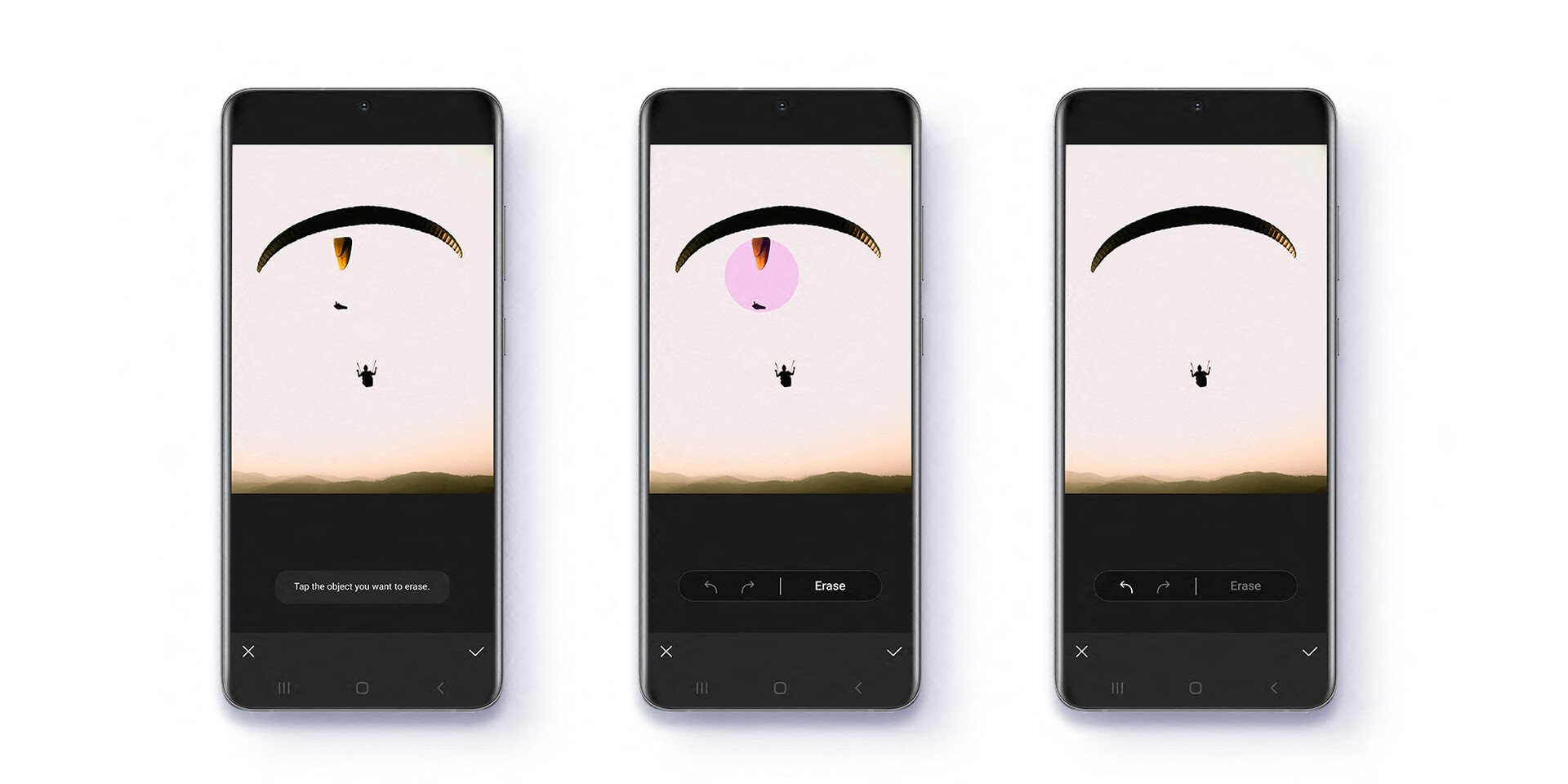 So erhalten die älteren Flaggschiffe nun auch den verbesserten Single Take-Modus, der mit nur einem Knopfdruck Fotos und Videoclips mit mehreren Kameras aufzeichnet, sodass der Nutzer anschließend die besten davon auswählen kann. Mit dem "Object eraser" können störende Objekte von einem Foto entfernt werden, indem diese einfach angetippt werden.