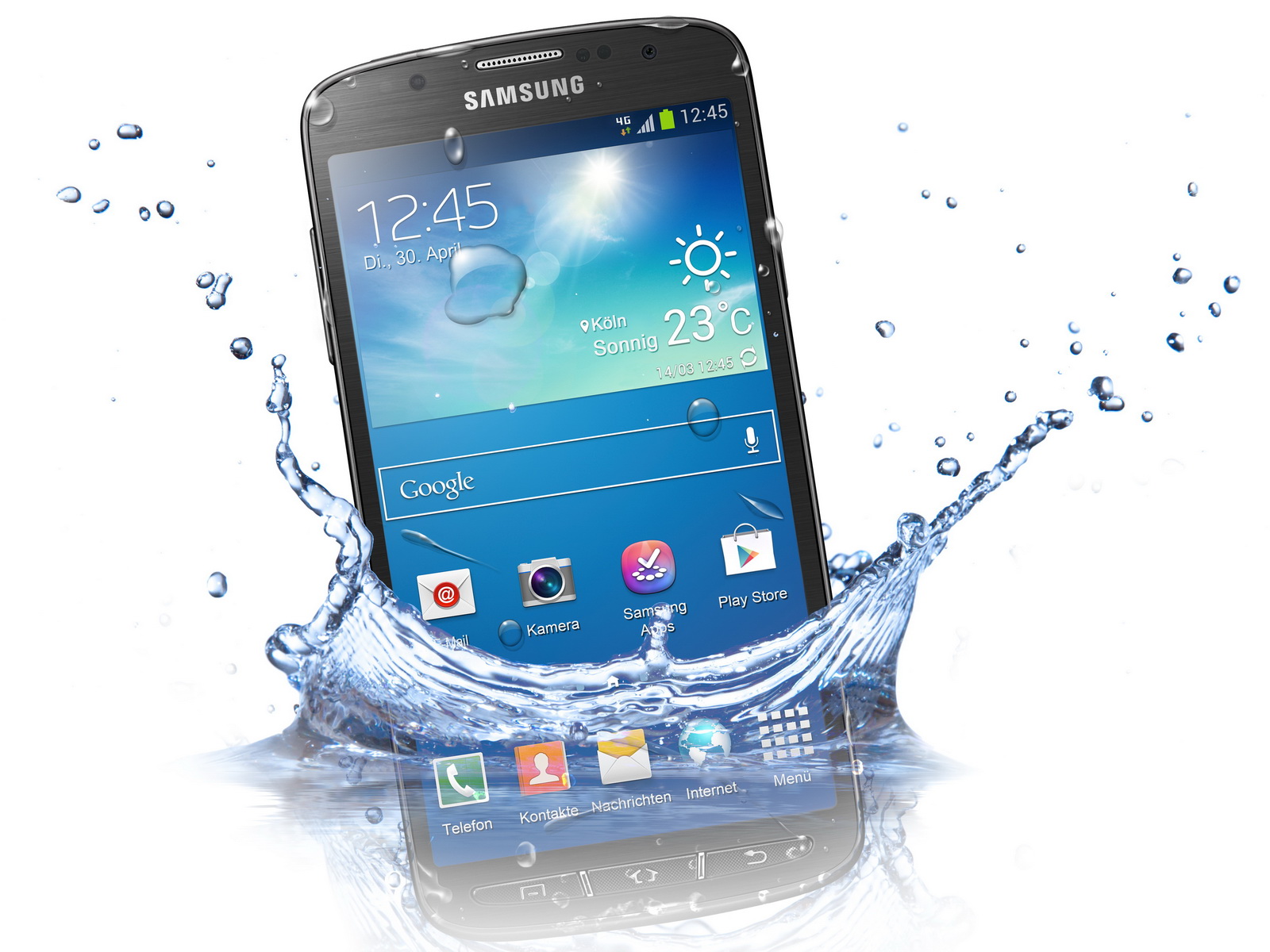 Laut Samsung ist das Outdoor-Phone Galaxy S4 Active bis zu einer Wassertiefe von 1 Meter wasserdicht. Auch über den Kopfhöreranschluss kann laut Samsung beim Rafting, Schnorcheln oder schlicht im Pool kein Wasser in das Smartphone eindringen. Unterwasserprofi: Der Wasser-Modus (Aqua Mode) des neuen Galaxy S4 Active soll zudem die Qualität der Tauchfotos und -videos verbessern.