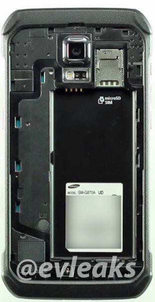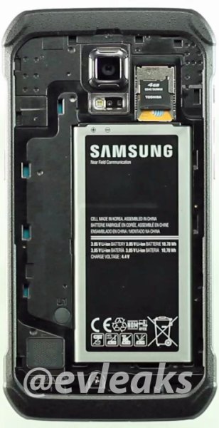 Neue Fotos zeigen das Galaxy S5 Active von hinten und vorne. Der verlässliche Leaker Evleaks hat sie auf Twitter veröffentlicht. Die Rückwand des Smartphones ist demnach abnehmbar. So kann man eine microSD-Karte und eine Micro-SIM-Karte einstecken. Der Akku lässt sich ebenfalls austauschen. Es handelt sich bei diesem um ein Modell mit der Kapazität von 2.800 mAh, was dem regulären Galaxy S5 entspricht. Das Display ist derweil um 0,1 Zoll auf 5,2 Zoll gewachsen. Auf den Bildern ist zu sehen, dass die Rückwand des Galaxy S5 offenbar aus Metall besteht. An den Seiten oben und unten ist das Handy von einer dicken Plastikschicht umgeben. Dadurch wird das Smartphone robuster. Angeblich erhält das S5 Active wie das Sony Xperia Z2 die Zertifizierung IP 55 / 58, womit das Smartphone noch besser gegen Wasser und Staub geschützt wäre als das Galaxy S5 mit IP67-Zertifiierung.