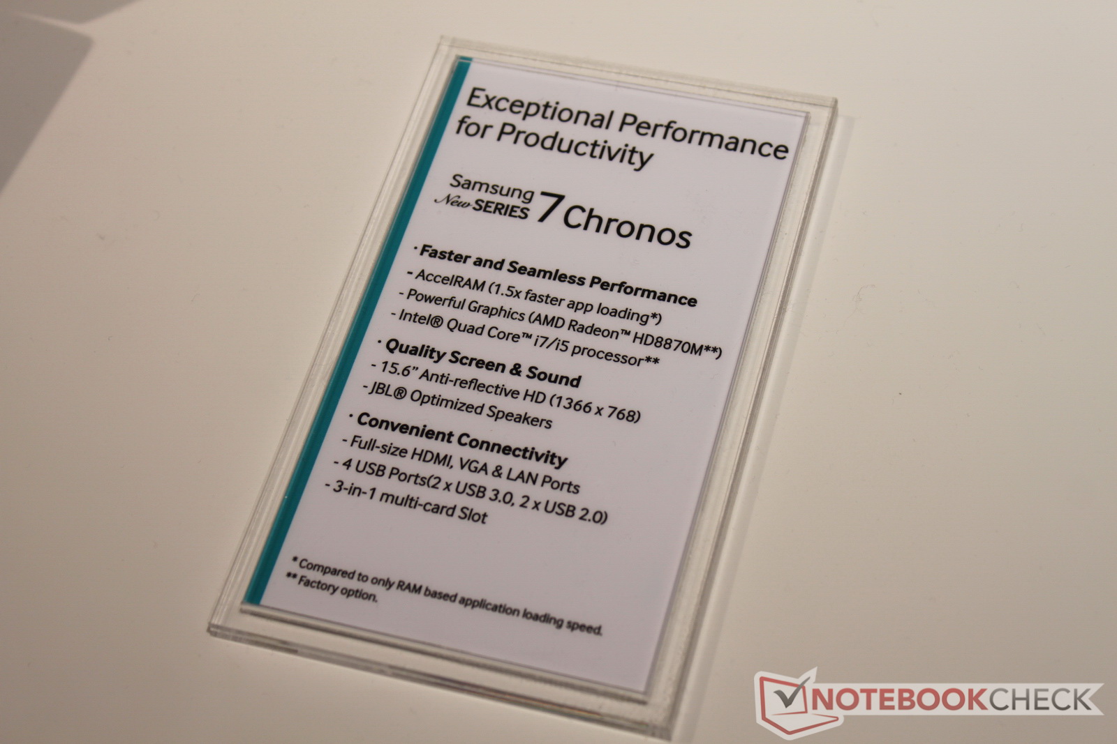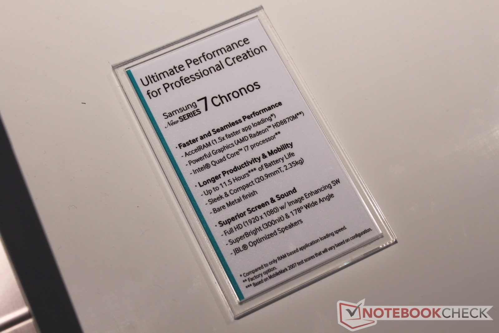 Kurz vor der CES 2013 hatten wir die neuen Modelle der Serie 7 Chronos und Serie 7 Ultra angekündigt. Samsung zeigt auf der CES im Bereich Notebooks sowohl zwei neue Geräte der Serie 7, als auch die Konzeptstudie der Serie 9. Die Serie 7 Chronos (770Z5E) wird noch leistungsfähiger und kommt mit neuen technischen Features, verpackt in ein schlankes Design. Die neue Serie 7 Ultra (730U3E) will in der Kategorie Ultrabooks mit höherer Leistung, verbesserter Grafik und Touchbedienung punkten.