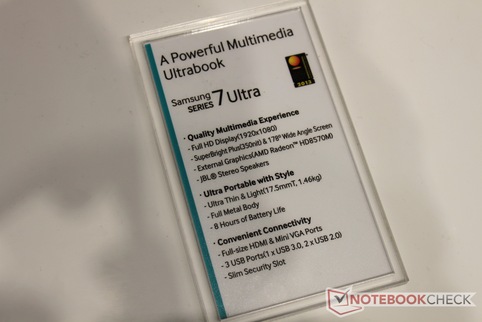 Jüngster Zuwachs der Serie 7 ist die Serie 7 Ultra. Im schlanken und leichten Aluminiumgehäuse des Ultrabooks arbeitet je nach Modell ein Intel ULV-Prozessor Core i5 oder Core i7. Die Grafikarbeit übernimmt eine AMD Radeon HD 8570M. Das 13,3"-Full-HD-Display ist optional auch als Multitouch-Variante erhältlich. Als Massenspeicher dienen SSDs mit einer Kapazität von bis zu 256 GByte. Laut Samsung erreicht die Serie 7 Ultra Akkulaufzeiten von bis zu 8 Stunden.