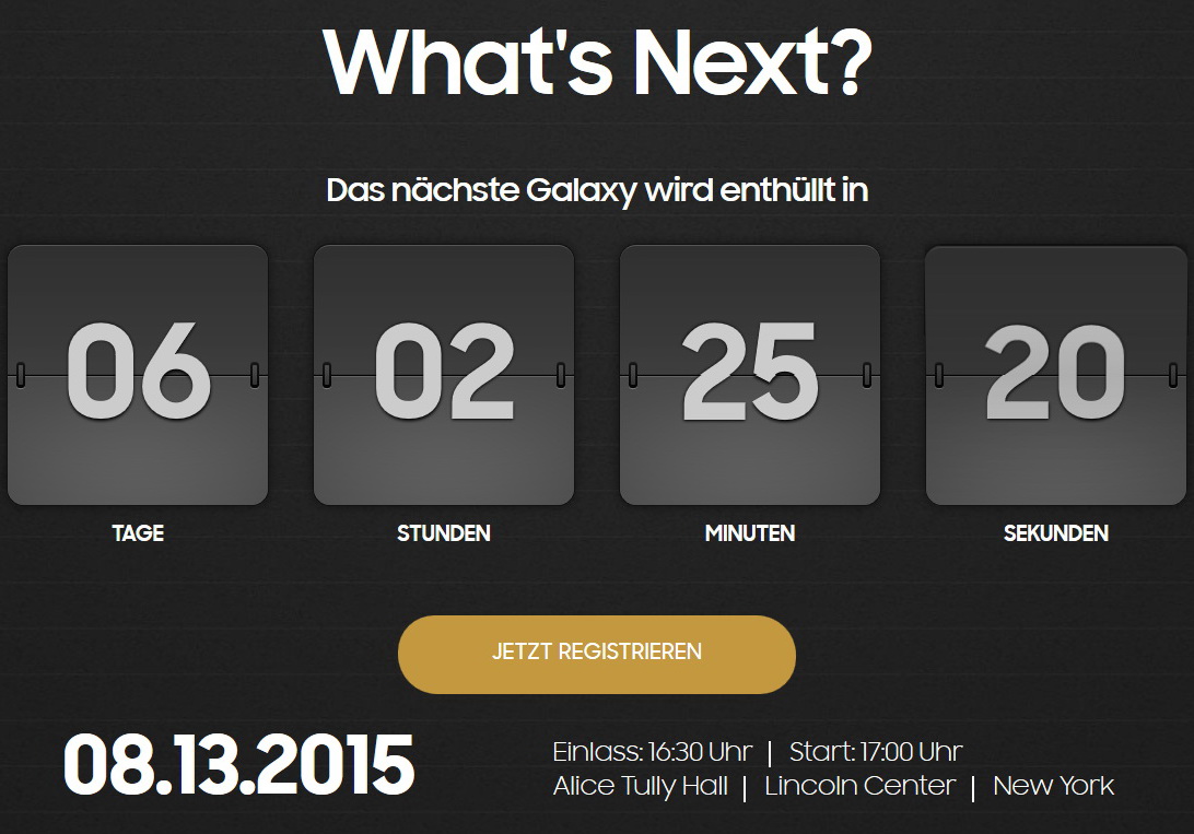 Samsung schaltet für seinen Galaxy Unpacked 2015 Event, der am kommenden Donnerstag (13. August 2015) in New York City stattfinden wird, in den nächsten Gang. Langsam aber sicher werden die Webauftritte der einzelnen Ländervertretungen und Regionen für die Veranstaltung umgestaltet. Dabei rutschte dem Branchenriesen auch schon das eine oder andere Bild durch, das der Elektronikkonzern offenbar noch nicht zeigen will und schnell wieder entfernt wurde.