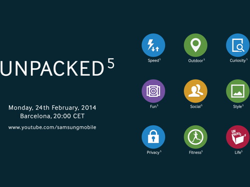 Samsung hat in seinem Konzernblog ein Update für den Samsung Unpacked 5 Event nachgelegt, der auf dem MWC 2014 stattfinden wird. Neben dem Datum (24.2.), der Zeit (20.00 Uhr CET) und dem Link zum Videokanal von Samsung Mobile auf YouTube zeigt Samsung als Hinweis auf die neue Benutzeroberfläche des Galaxy S5 neun flache und runde Icons.
