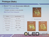 Wie aus der Beschreibung des Videos zu Samsungs erstem dehnbaren OLED-Display zu erfahren ist, verträgt das im Clip zu sehende 9,1-Zoll-OLED-Panel von Samsung eine Dehnung von maximal jeweils 12 Millimetern in beide Richtungen. Nach der Verformung kehrt das Display zu seiner ursprünglichen Form zurück.