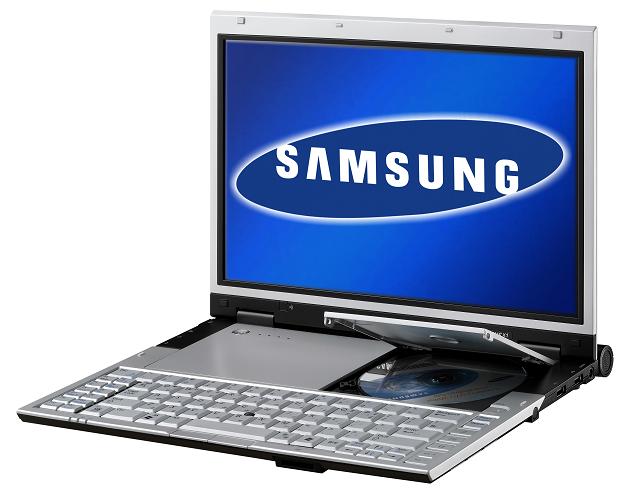 EN→DE Archive.org versionSamsung has reinvented itself this year as a company that specialises in ultraportable laptops. This doesn’t mean simply making them as small as possible, as the 14-inch screen of the Samsung X1 (£1409 inc. VAT) proves. Rather, the company has designed some stunningly slim and lightweight machines, as the 24mm chassis, which weighs 1.7kg, attests too. To get a chassis this slim, Samsung has had to move the optical drive away from the side of the casing and place it on the mainboard. So when you press a button, the drive lid pops up. This makes getting discs in and out easier, but doesn’t allow for any upgrade path. Fortunately, the dual-format DVD rewriter is as cutting-edge as you’ll find, so this won’t be a problem.