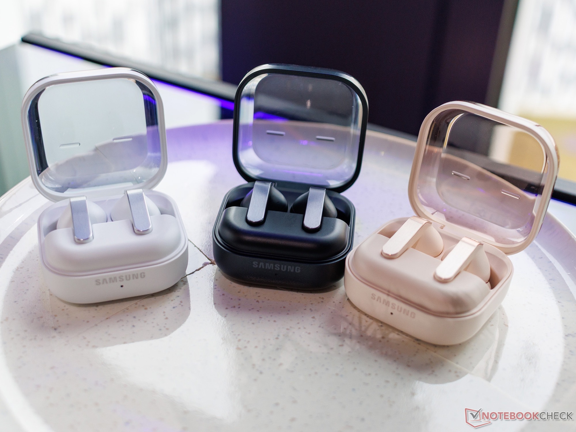 Das Gehäuse der Ohrhörer wird etwas kleiner, was den Tragekomfort verbessern soll. Eine Einkerbung macht es leichter, die berührungsempfindliche Oberfläche zu spüren, die zum Steuern der Musikwiedergabe genutzt wird. Samsung verspricht auch besseren Klang als beim Vorgängermodell. Der dynamische 11 Millimeter Tief-Mitteltöner erreicht eine 20 Prozent größere effektive Lautsprecherfläche, für detailreichere Musikwiedergabe verbaut Samsung zusätzlich einen Hochtöner.
