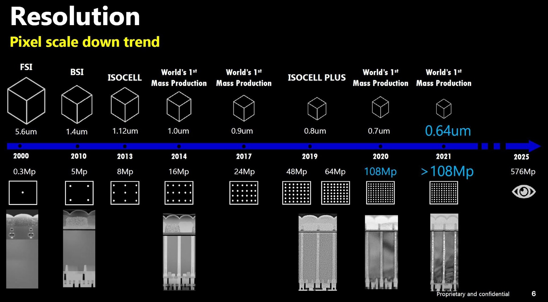 Denn Haechang Lee, seines Zeichens Senior Vice President von Samsungs Automotive Sensor Abteilung, hat die unten eingebettete Roadmap im Rahmen einer Präsentation beim SEMI Europe Summit gezeigt. Darauf sind nicht nur Samsungs bisherige Fortschritte verzeichnet, mit ein paar Zwischenschritten endet die Roadmap im Jahr 2025, und zwar mit einem 576 MP Sensor.