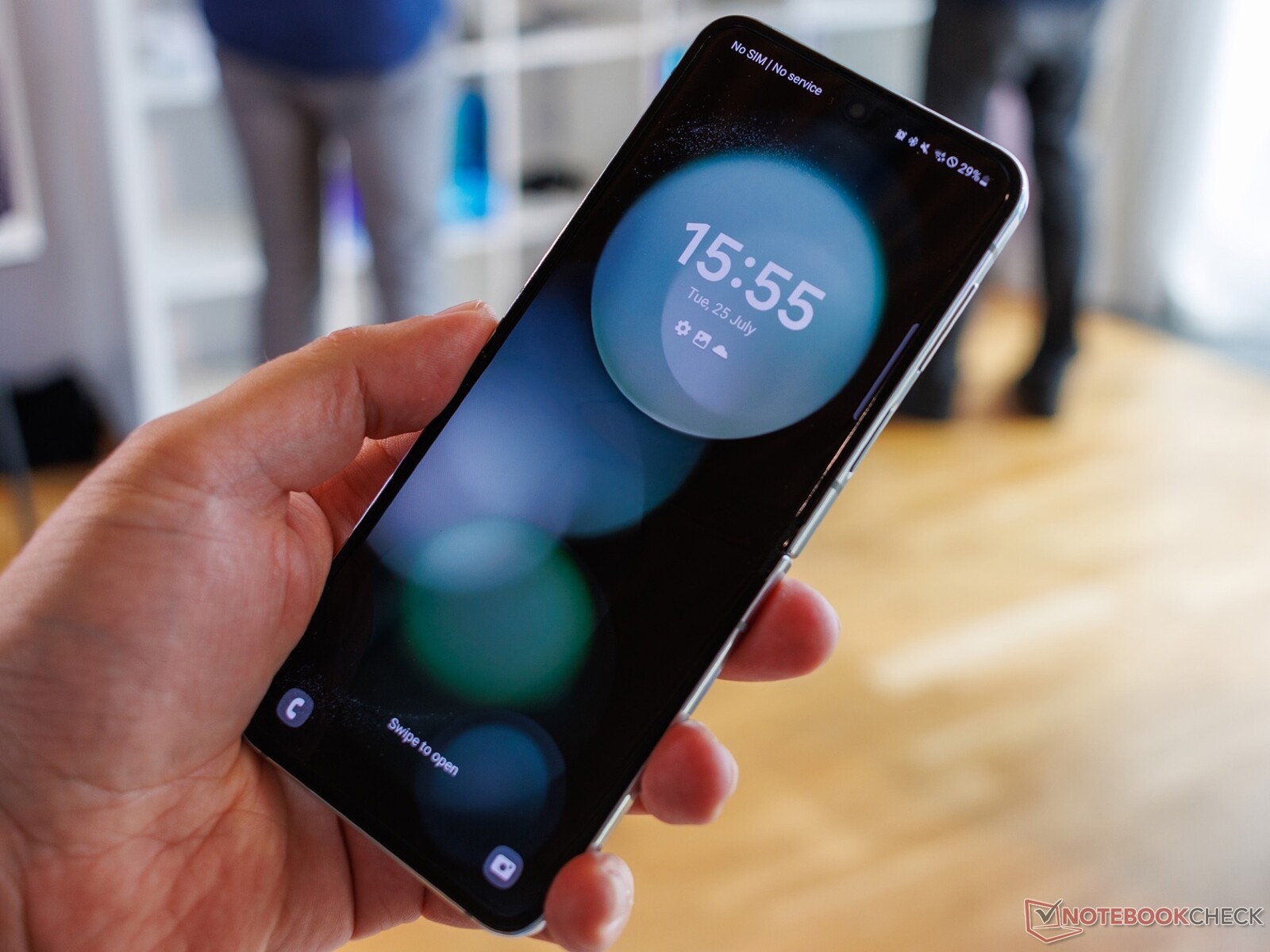 Die wortwörtlich größte Neuerung ist das Zweitdisplay, das auf eine Diagonale von 3,4 Zoll wächst, womit dieses 3,78 Mal größer als beim Galaxy Z Flip4 ausfällt. Samsung verbaut ein Super AMOLED Panel, das eine Auflösung von 720 x 748 Pixel und eine Bildfrequenz von 60 Hz erreicht. Durch die zusätzliche Fläche soll sich das Display vielseitiger nutzen lassen, wobei Samsung den Fokus weiterhin auf Widgets legt, die unter anderem Auskunft über das Wetter sowie über Aktienkurse geben und die Musikwiedergabe steuern.