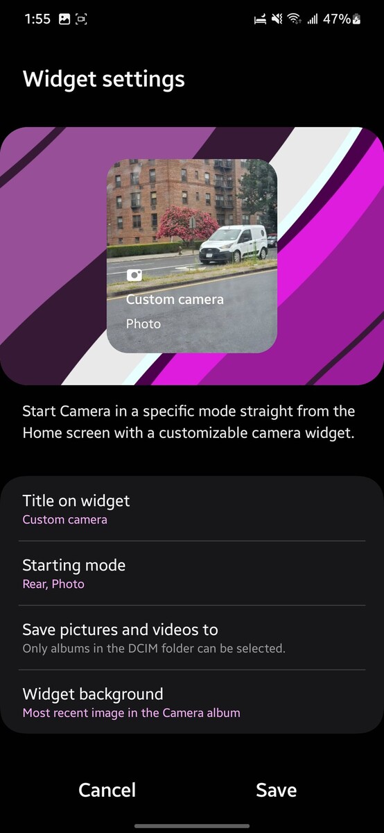 Pop-Up-Fenster werden nicht mehr geschlossen, wenn die App gewechselt wird. Samsung führt eine komfortable Zweihand-Bedienung für Drag & Drop ein und überarbeitet die Quick-Share-Benutzeroberfläche. Samsung führt ein neues Wetter-Widget ein, und vor allem auch ein neues Kamera-Widget, das es Nutzern erlaubt, selbst festzulegen, welche Kamera und welcher Modus geöffnet werden.