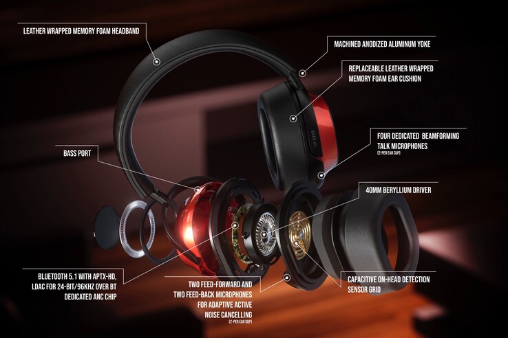 Das Highlight der Ausstattung sind die Beryllium-Treiber mit einem Durchmesser von 40 Millimetern, die Hochtöne bis hin zu 40 kHz wiedergeben können sollen. Damit bei der drahtlosen Bluetooth 5.1-Verbindung zum Smartphone möglichst wenig verloren geht unterstützen die Kopfhörer sowohl Qualcomm aptX Adaptive (bis 96 kHz / 24-bit bei 420 kbit/s) als auch Sony LDAC (bis 96 kHz / 32-bit bei 990 kbit/s), wie üblich sind Apple-Geräte wie das iPhone auf AAC (256 kbit/s) beschränkt.