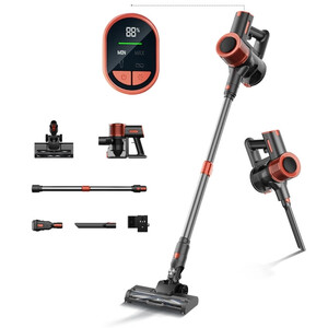 Zu den weiteren Eigenschaften zählen ein ausziehbares Metallrohr, grüne LEDs für bessere Sicht auf Staub und Co sowie ein multifunktionaler Bürstenkopf für alle Arten von Böden. Zudem liegen auch hier verschiedene Aufsätze für unterschiedliche Reinigungsaufgaben bei. Die Akkulaufzeit beträgt bis zu üppigen 40 Minuten.
