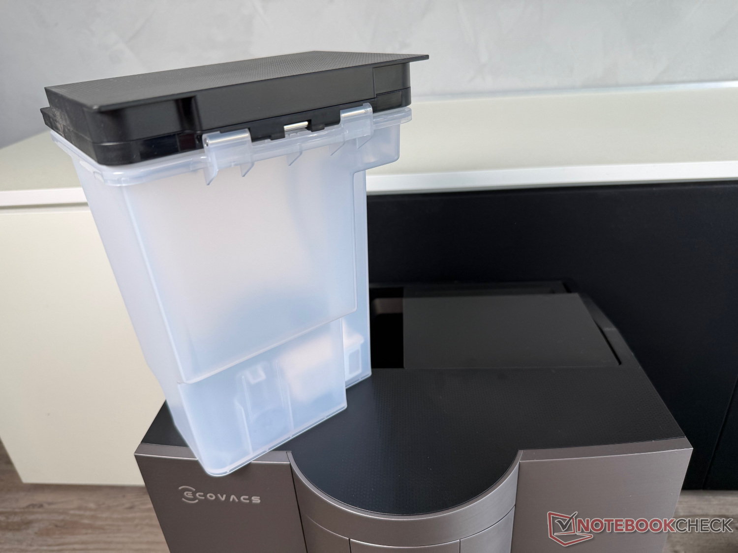 Neu ist, dass nun gleich zwei Tanks für Reinigungsmittel in der Station verbaut sind, versteckt hinter der abnehmbaren linken Blende. So lassen sich eine normale und eine Intensiv-Reinigungslösung einfüllen, je nach Bedarf. Allerdings legt der Hersteller unverständlicherweise keines der Mittel bei - nicht mal eine kleine Probe.