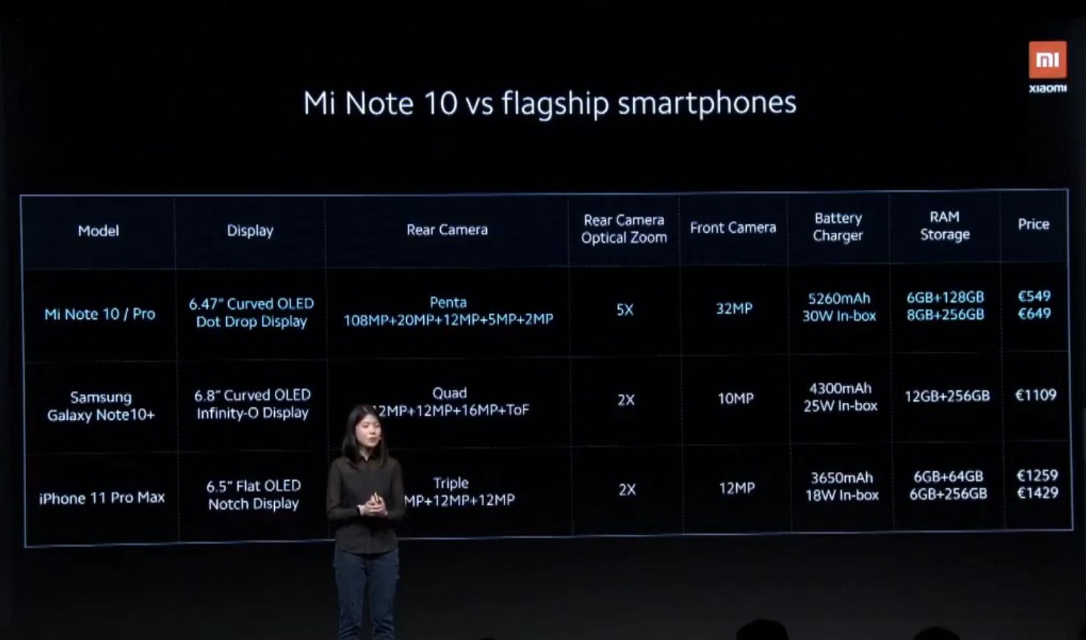 Was durchaus auffällt ist, dass Xiaomi das Thema Prozessor komplett aus ihrer Präsentation gestrichen hatte. Bei der Vorstellung des heute ebenfalls offiziell gestarteten Redmi Note 8T spielte der dort integrierte Snapdragon 665 durchaus eine Rolle, beim Mi Note 10 versteckt man den integrierten Snapdragon 730 dagegen deutlich. Das mag durchaus Methode haben, denn mit diesem Premium-Midrange-SoC kann sich Xiaomi eigentlich nicht mit dem Samsung Galaxy Note 10+ oder dem Apple iPhone 11 Pro Max auf eine Stufe stellen, genau das passierte aber im Rahmen des Launchevents.