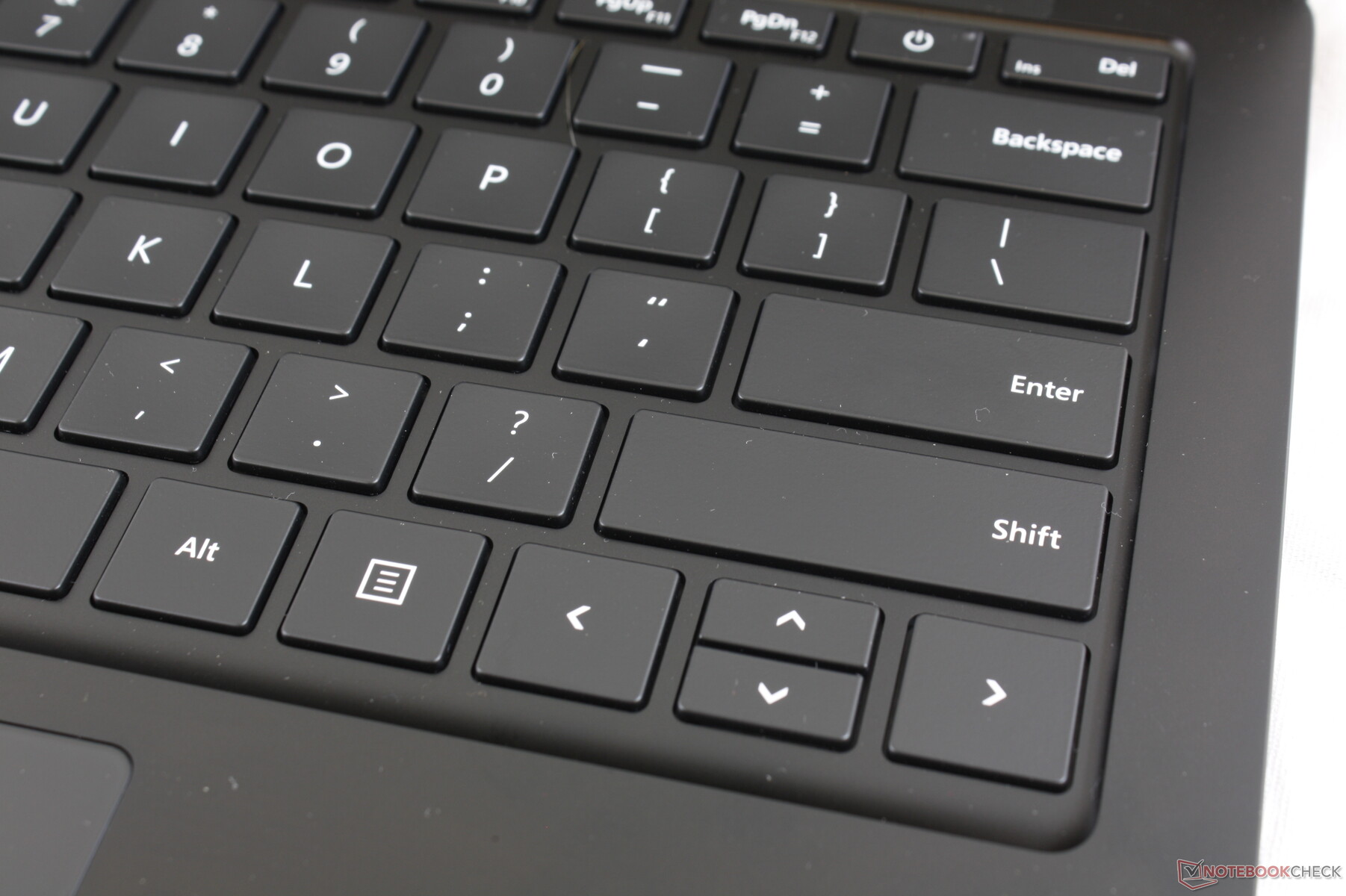 Die Tastatur und das Clickpad sind die gleichen wie die auf dem größeren 15-Zoll-Surface-Laptop-3. Selbst die Größe der Tasten und des Clickpads sind ident (11,5 x 7,6 cm). Daher gilt unsere Bewertung der Eingabegeräte auch hier: Zufriedenstellendes Feedback, moderates Tippgeräusch, enge Pfeiltasten. Das Tippgefühl auf dem HP Spectre oder der Lenovo-ThinkPad-T-Serie ist immer noch etwas fester und bietet mehr Feedback.