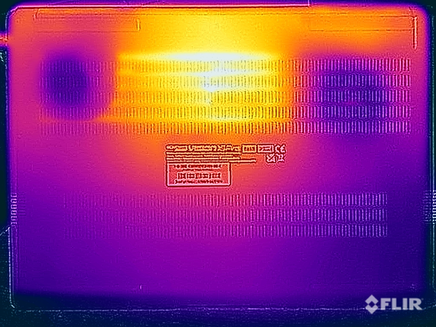 Im Alltag gibt es keinerlei Temperaturprobleme, beim Spielen oder hoher Belastung für die Komponenten sollte man das Gerät aber nicht auf den Oberschenkeln abstellen. Im Extremfall messen wir im mittleren Bereich der Unterseite Temperaturen von mehr als 50 °C. Der mittlere Tastaturbereich erwärmt sich auch auf mehr als 45 °C, was man beim Tippen auch merkt. Die typischen WASD-Tasten bleiben aber deutlich kühler, was beim Spielen hilft. Das deutlich kompaktere Netzteil wird übrigens nur unwesentlich wärmer als das alte Modell und mit maximal 44 °C gibt es hier keine Probleme.