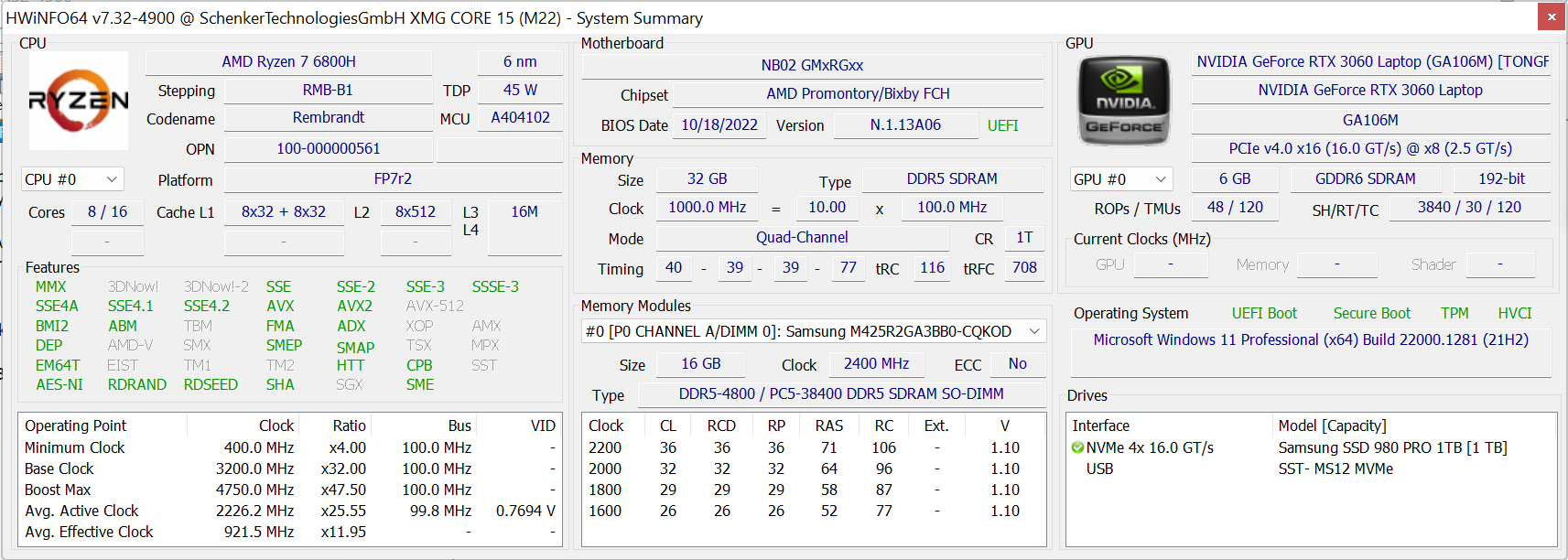 XMG Pro 15 (Core i7-12700H, RTX 3080 Ti)