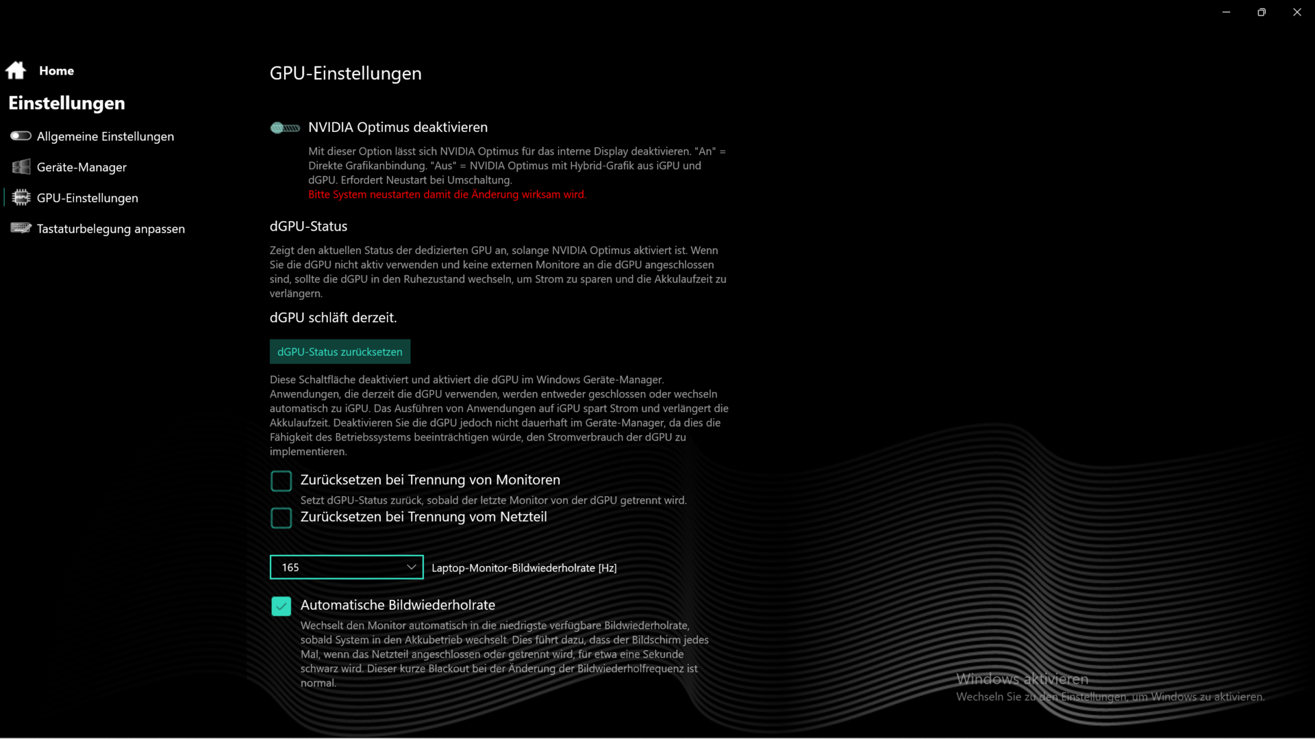 Trotz dem kleinen 62-Wh-Akku sind die Laufzeiten, etwa beim Websurfen bei 150 cd/m², mit 7:45 h durchaus brauchbar. Getestet haben wir im Enthusiast-Modus, während sich die Bildwiederholrate automatisch auf 60 Hz im Akkubetrieb absenkt.