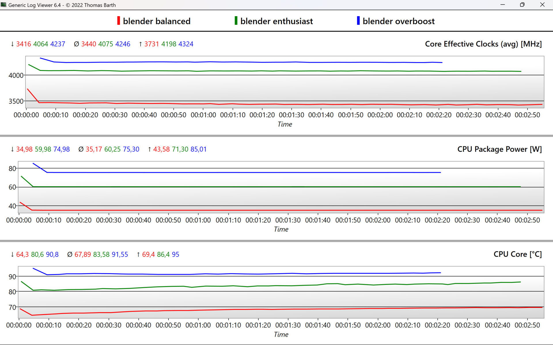 | CPU Clock (GHz) | GPU Clock (MHz) | Average CPU Temperature (°C) | Average GPU Temperature (°C) | |