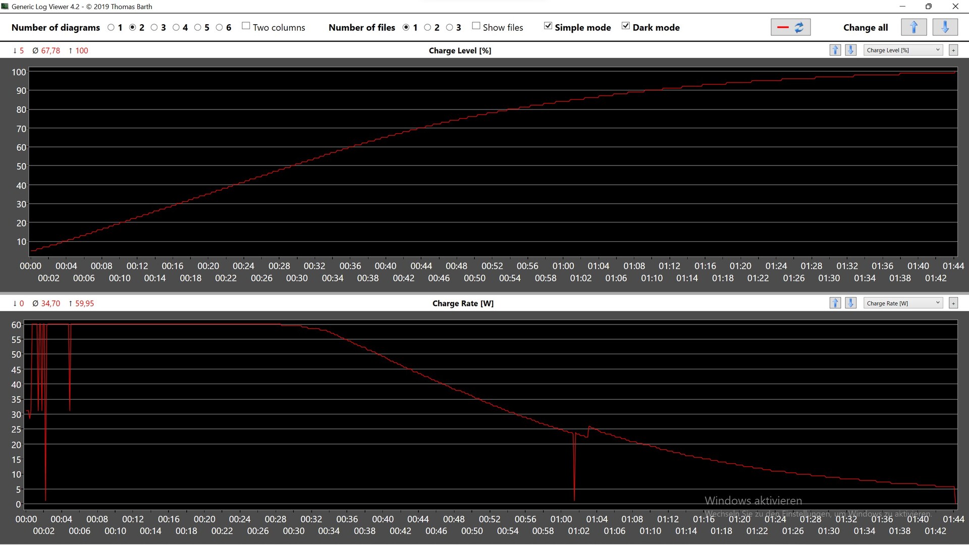 Das XMG Core 15 hält in unserem Vergleichsfeld somit am längsten durch und ist ein effizienter Gamer, da die Konkurrenz allesamt sogar auf größere Akkus setzt, mit 80 bis 93 Wh. In 30 Minuten ist der Akku zur Hälfte nachgeladen.