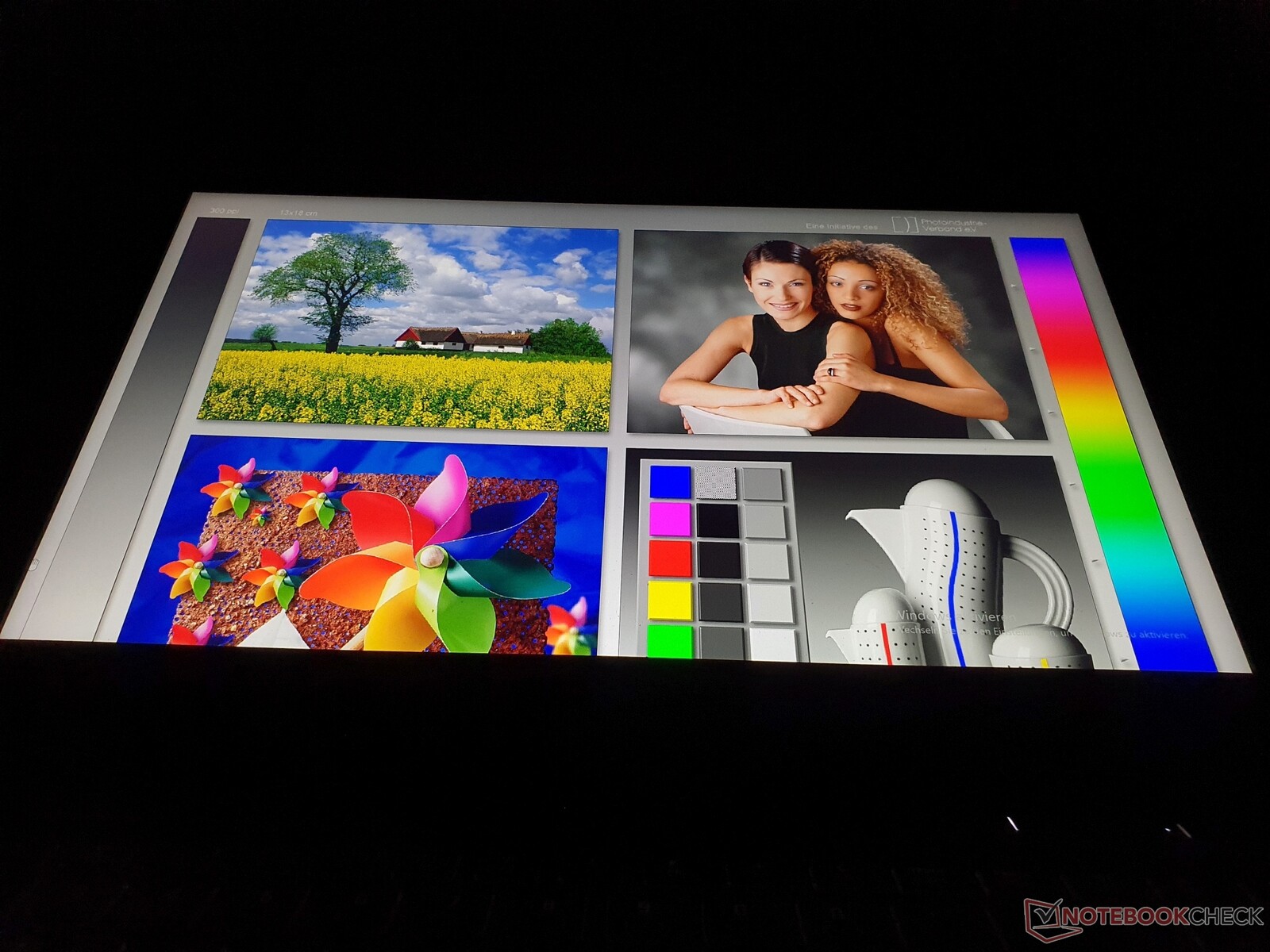 Der sRGB-Farbraum wird zu 99,3 % abgedeckt, was eine professionelle Bildbearbeitung im digitalen Bereich ermöglicht. Größere Farbräume, wie DCI-P3 für Videobearbeitung und AdobeRGB für das Ziel des professionellen Drucks von bearbeiteten Bildern, decken in unserem Vergleichsfeld jedoch nur das Alienware m15 und das HP Envy 16 nahezu vollständig ab.